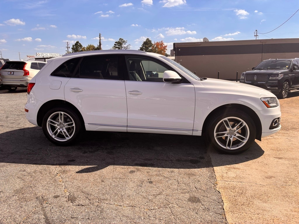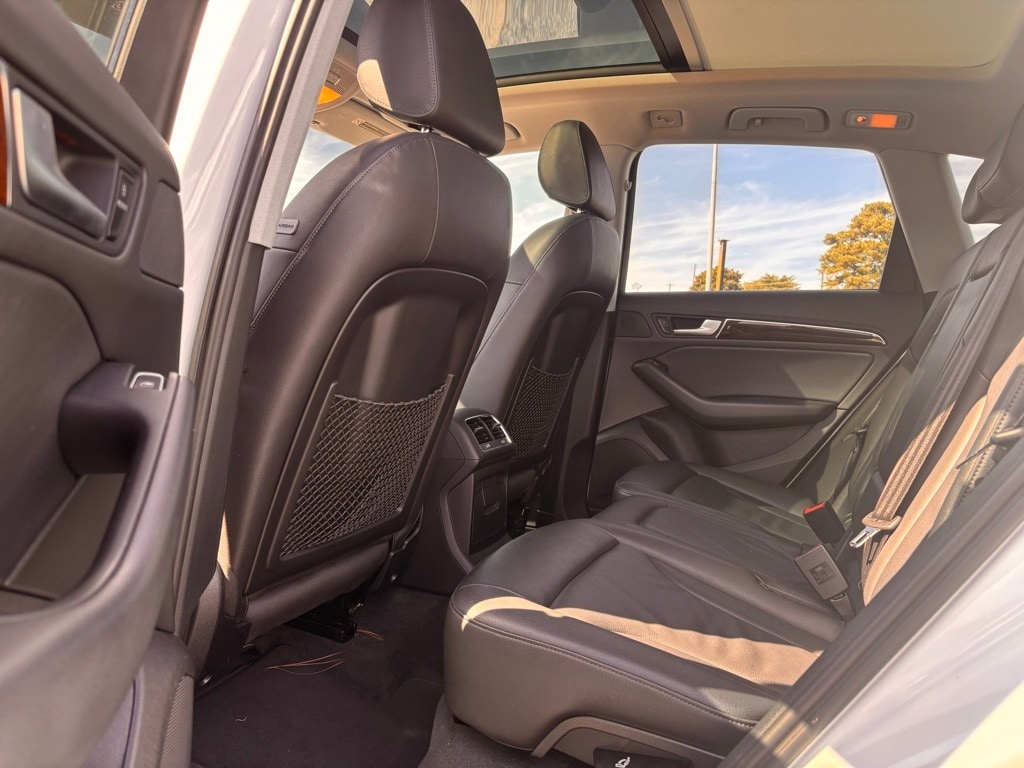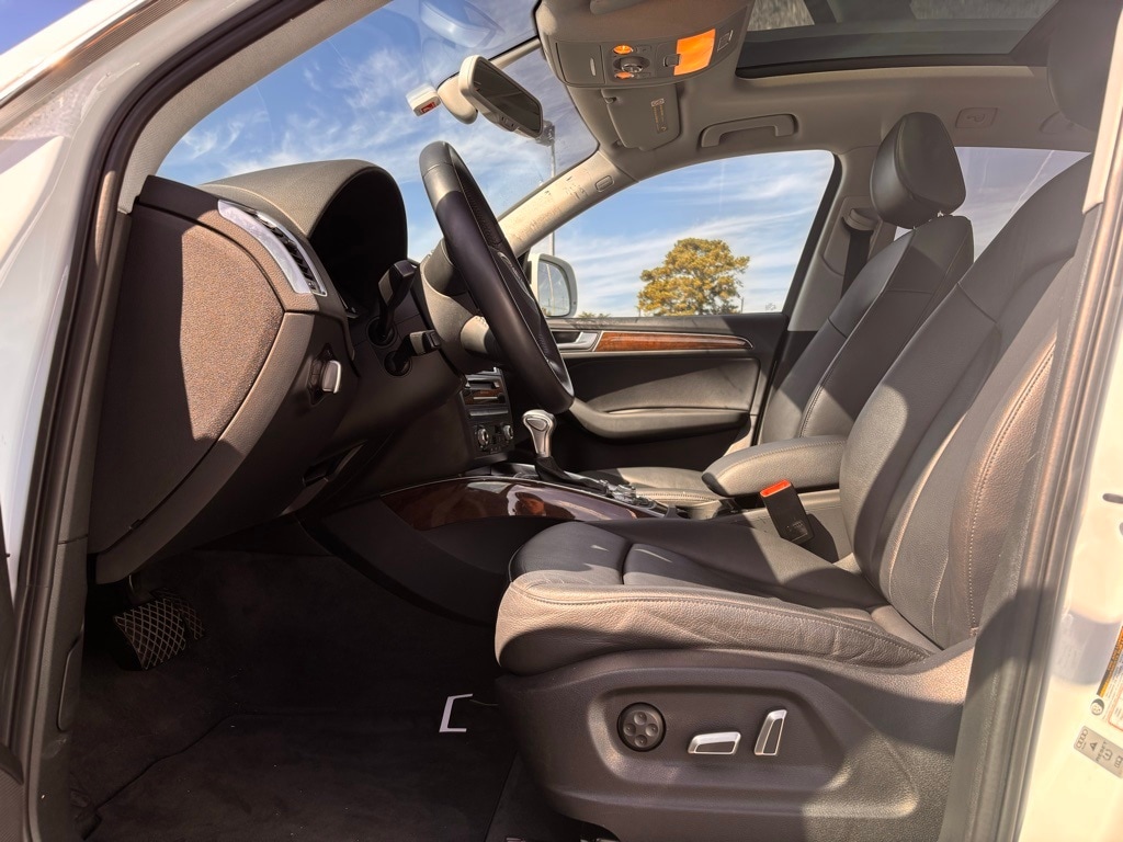 Ibis White 2015 Audi Q5 2.0T Premium Plus 2.0L 4-Cylinder TFSI 8-Speed Automatic with Tiptronic 4D Sport Utility Premium Plus Package (Aluminum Trunk Edge Trim & Door Sills, Audi Advanced Key, Auto-Dimming Interior Mirror w/Compass, Driver Side Memory, Heated Auto-Dimming & Power-Folding Mirrors, Heated Front Seats, and Panorama Sunroof), Technology Package (Audi Connect w/Online Services, Audi Parking System Plus w/Rear View Camera, Audi Side Assist, Color Driver Information System w/Trip Computer, and Radio: Audi MMI Navigation Plus System), 10 Speakers, 2.84 Axle Ratio, 4-Wheel Disc Brakes, ABS brakes, Air Conditioning, Alloy wheels, AM/FM radio, Audi First Aid Kit, Audi Guard All-Weather Mats (Set of 4), Automatic temperature control, Brake assist, Bumpers: body-color, CD player, Delay-off headlights, Driver door bin, Driver vanity mirror, Dual front impact airbags, Dual front side impact airbags, Electronic Stability Control, Four wheel independent suspension, Front anti-roll bar, Front Bucket Seats, Front Center Armrest, Front dual zone A/C, Front fog lights, Front reading lights, Garage door transmitter: HomeLink, Genuine wood console insert, Genuine wood dashboard insert, Genuine wood door panel insert, Heated door mirrors, High intensity discharge headlights: Xenon plus, Illuminated entry, Leather Seating Surfaces, Leather Shift Knob, Leather steering wheel, Low tire pressure warning, Occupant sensing airbag, Outside temperature display, Overhead airbag, Overhead console, Panic alarm, Passenger door bin, Passenger vanity mirror, Power door mirrors, Power driver seat, Power Front Bucket Seats, Power Liftgate, Power passenger seat, Power steering, Power windows, Radio data system, Radio: Audi MMI Plus System w/6.5" Color Screen, Rain sensing wipers, Rear air conditioning, Rear anti-roll bar, Rear fog lights, Rear reading lights, Rear seat center armrest, Rear window defroster, Rear window wiper, Remote keyless entry, Roof rack, Security system, Speed control, Speed-sensing steering, Speed-Sensitive Wipers, Split folding rear seat, Spoiler, Steering wheel mounted audio controls, Tachometer, Telescoping steering wheel, Tilt steering wheel, Traction control, Trip computer, Turn signal indicator mirrors, Variably intermittent wipers, Wheels: 8.0J x 18" 5-V-Spoke-Design, and Wheels: 8.0J x 19" 5-Arm Star Design.