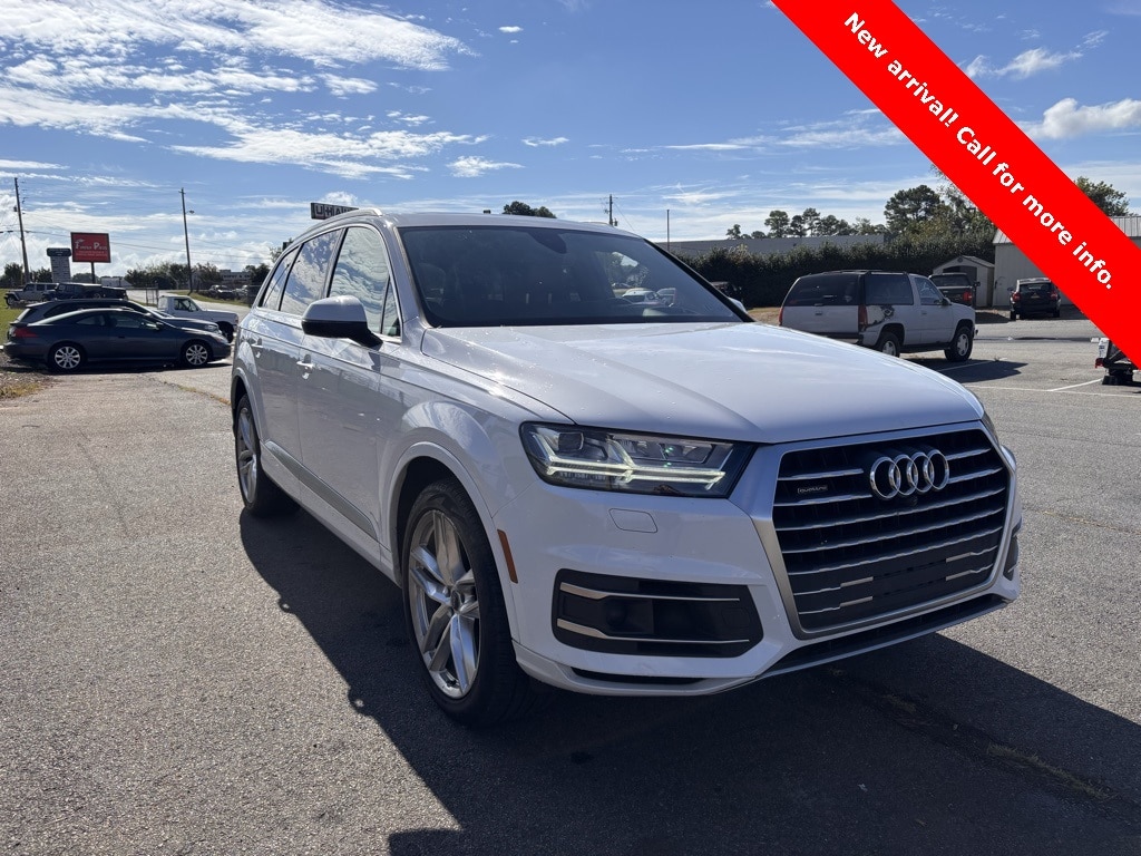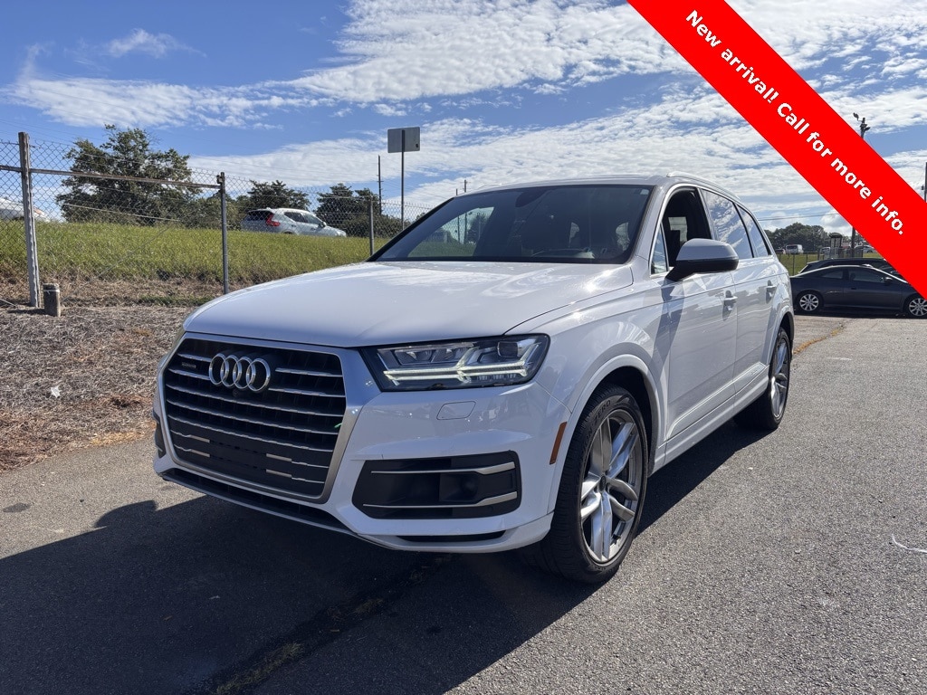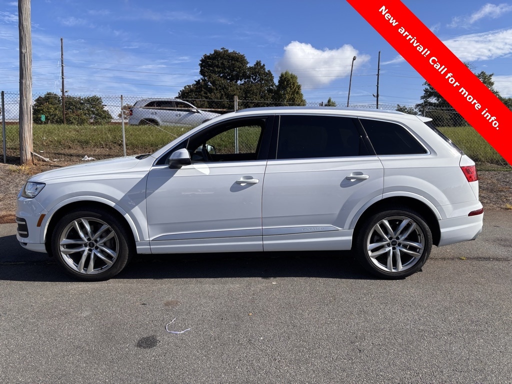 White 2018 Audi Q7 3.0T Prestige 3.0L TFSI V6 DOHC 8-Speed Automatic with Tiptronic 4D Sport Utility 10 Speakers, 3.204 Axle Ratio, 3rd row seats: bench, 4-Wheel Disc Brakes, ABS brakes, Air Conditioning, Alloy wheels, AM/FM radio: SiriusXM, Auto-dimming Rear-View mirror, Automatic temperature control, Brake assist, Bumpers: body-color, CD player, Compass, Delay-off headlights, Driver door bin, Driver vanity mirror, Driver's Seat Mounted Armrest, Dual front impact airbags, Dual front side impact airbags, Electronic Stability Control, Exterior Parking Camera Rear, Four wheel independent suspension, Front anti-roll bar, Front Bucket Seats, Front dual zone A/C, Front fog lights, Front reading lights, Fully automatic headlights, Garage door transmitter: HomeLink, Heated door mirrors, Heated Front Bucket Seats, Heated front seats, High intensity discharge headlights: Xenon plus, Illuminated entry, Leather Seating Surfaces, Leather Shift Knob, Leather steering wheel, Low tire pressure warning, Memory seat, Occupant sensing airbag, Outside temperature display, Overhead airbag, Panic alarm, Passenger door bin, Passenger seat mounted armrest, Passenger vanity mirror, Power door mirrors, Power driver seat, Power Liftgate, Power moonroof, Power passenger seat, Power steering, Power windows, Radio data system, Radio: MMI Radio Plus w/Audi Sound System, Rain sensing wipers, Rear air conditioning, Rear anti-roll bar, Rear fog lights, Rear reading lights, Rear seat center armrest, Rear window defroster, Rear window wiper, Remote keyless entry, Roof rack: rails only, Security system, Speed control, Speed-sensing steering, Split folding rear seat, Spoiler, Steering wheel mounted audio controls, Tachometer, Telescoping steering wheel, Tilt steering wheel, Traction control, Trip computer, Turn signal indicator mirrors, Variably intermittent wipers, and Wheels: 19" 5-V-Spoke Design.