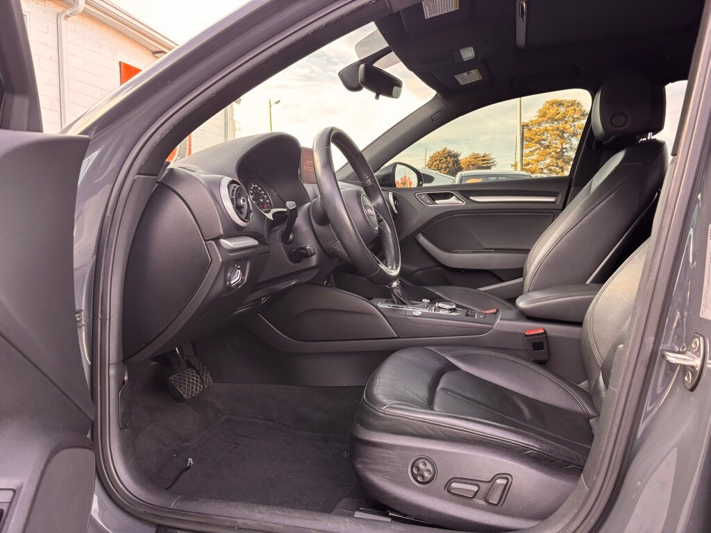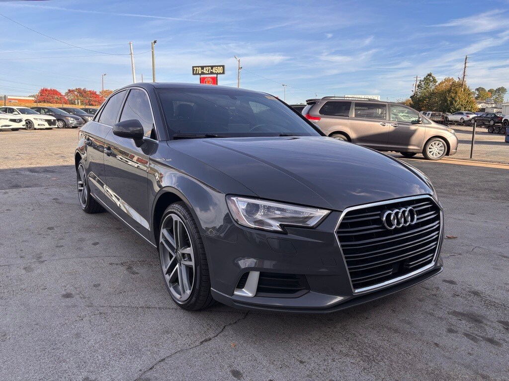 Gray Metallic 2019 Audi A3 2.0T Premium 2.0L 4-Cylinder TFSI 7-Speed Automatic S tronic 4D Sedan Convenience Package (Audi Advanced Key, Audi Side Assist, and High-Gloss Aluminum Window Surrounds), LED Interior Lighting Package (Full LED Headlights and LED Taillights w/Dynamic Turn Signals), 10 Speakers, 4-Wheel Disc Brakes, ABS brakes, Air Conditioning, Alloy wheels, AM/FM radio: SiriusXM, Anti-whiplash front head restraints, Audi smartphone interface (Apple CarPlay/Android Auto), Automatic temperature control, Brake assist, Bumpers: body-color, CD player, Delay-off headlights, Delete Front License Plate Holder, Driver door bin, Driver vanity mirror, Dual front impact airbags, Dual front side impact airbags, Electronic Stability Control, Exterior Parking Camera Rear, Four wheel independent suspension, Front anti-roll bar, Front Bucket Seats, Front Center Armrest, Front dual zone A/C, Front reading lights, Heated door mirrors, Heated Front Bucket Seats, Heated front seats, High intensity discharge headlights: Xenon plus, Illuminated entry, Knee airbag, Leather Seating Surfaces, Leather Shift Knob, Leather steering wheel, Low tire pressure warning, Occupant sensing airbag, Outside temperature display, Overhead airbag, Panic alarm, Passenger door bin, Passenger vanity mirror, Power door mirrors, Power driver seat, Power moonroof, Power steering, Power windows, Radio data system, Radio: Audi Concert AM/FM/CD/SAT Player, Rain sensing wipers, Rear anti-roll bar, Rear fog lights, Rear reading lights, Rear seat center armrest, Rear window defroster, Remote keyless entry, Security system, Speed control, Speed-sensing steering, Speed-Sensitive Wipers, Split folding rear seat, Steering wheel mounted audio controls, Tachometer, Telescoping steering wheel, Tilt steering wheel, Traction control, Trip computer, Turn signal indicator mirrors, Variably intermittent wipers, and Wheels: 18" x 8" 5-Double-Spoke-Design Bi-Color.