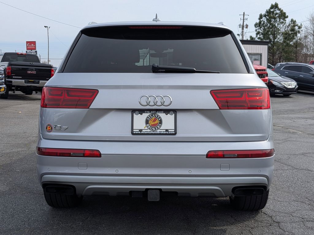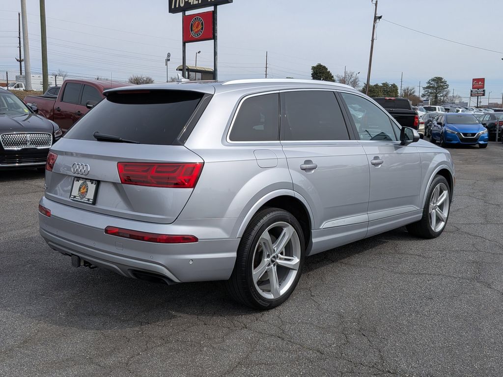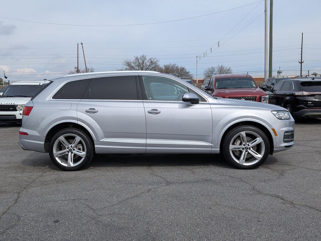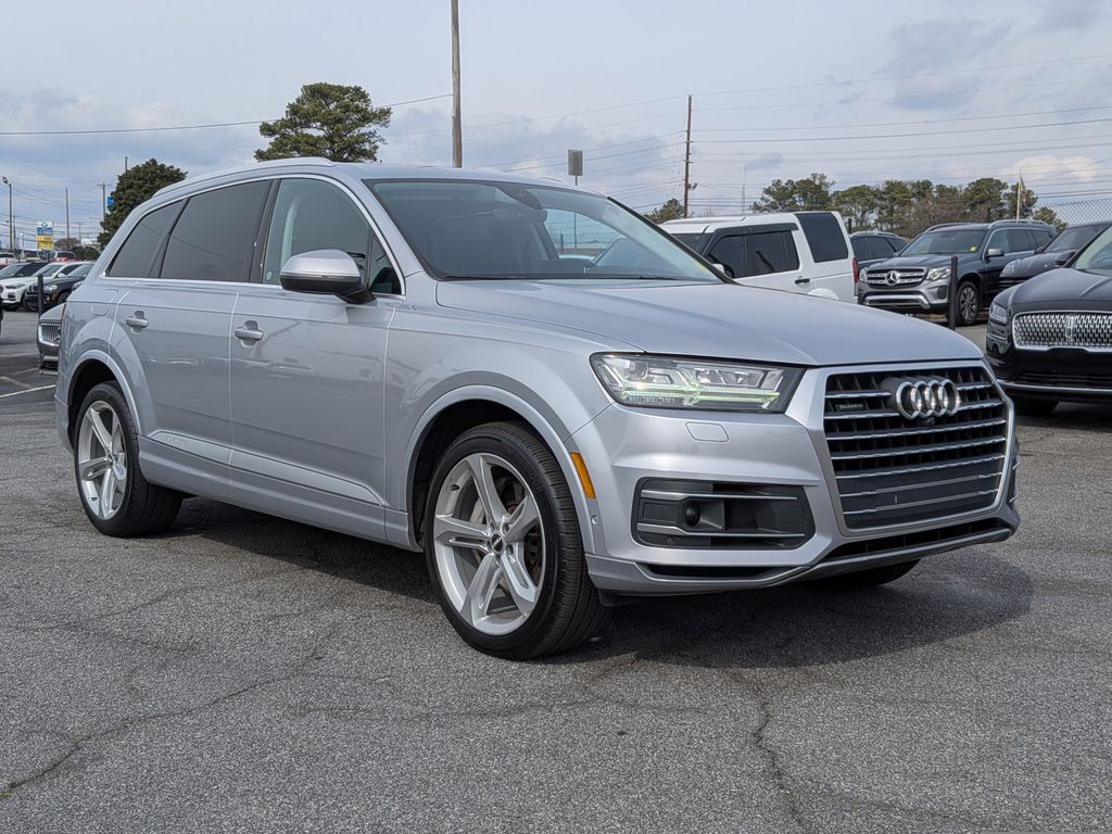 Silver Metallic 2019 Audi Q7 55 Prestige 3.0L TFSI V6 DOHC 8-Speed Automatic with Tiptronic 4D Sport Utility Convenience Package (Audi Phone Box w/Wireless Charging, Audi Side Assist w/Pre Sense Rear, and Heated Auto-Dimming Power Folding Exterior Mirrors), Driver Assistance Package (Audi Active Lane Assist, Audi Adaptive Cruise Control w/Traffic Jam Assist, Audi Park Steering Assist, Audi Pre Sense Front, High-Beam Assistant, and Traffic Sign Recognition), Extended Leather Package, LED Interior Lighting Package, Luxury Package (Individual Contour Front Seats, Light Alcantara Headliner, and Valcona Leather Seat Trim), Multicolor Ambient Interior Lighting Plus Package, Prestige Package (3D Bose Surround Sound System, Audi Virtual Cockpit, Head-Up Display, LED Headlights w/Dynamic Indicators, Power Closing Doors, Topview Camera System, and Wheels: 20" 10-Spoke-Star Design Bi-Color), Towing Package, Warm Weather Package (4-Zone Automatic Climate Control, Driver & Passenger Front Seats w/Ventilation, and Rear Door/Side Windows & Tailgate Sunshades), 10 Speakers, 3.204 Axle Ratio, 3rd row seats: bench, 4-Wheel Disc Brakes, ABS brakes, Air Conditioning, Alloy wheels, AM/FM radio: SiriusXM, Audi smartphone interface (Apple CarPlay/Android Auto), Auto-dimming Rear-View mirror, Automatic temperature control, Black Exhaust Tips, Brake assist, Bumpers: body-color, CD player, Compass, Delay-off headlights, DELETE Front License Plate Holder, Driver door bin, Driver vanity mirror, Driver's Seat Mounted Armrest, Dual front impact airbags, Dual front side impact airbags, Electronic Stability Control, Emergency communication system: Audi connect CARE, Exterior Parking Camera Rear, Four wheel independent suspension, Front anti-roll bar, Front Bucket Seats, Front dual zone A/C, Front fog lights, Front reading lights, Fully automatic headlights, Garage door transmitter: HomeLink, Heated door mirrors, Heated Front Bucket Seats, Heated front seats, High intensity discharge headlights: Xenon plus, Illuminated entry, Leather Seating Surfaces, Leather Shift Knob, Leather steering wheel, Low tire pressure warning, Memory seat, Navigation system: MMI Navigation plus, Occupant sensing airbag, Outside temperature display, Overhead airbag, Panic alarm, Passenger door bin, Passenger seat mounted armrest, Passenger vanity mirror, Power door mirrors, Power driver seat, Power Liftgate, Power moonroof, Power passenger seat, Power steering, Power windows, Radio data system, Radio: Audi MMI Navigation Plus, Rain sensing wipers, Rear air conditioning, Rear anti-roll bar, Rear fog lights, Rear reading lights, Rear seat center armrest, Rear window defroster, Rear window wiper, Remote keyless entry, Roof rack: rails only, Security system, Speed control, Speed-sensing steering, Split folding rear seat, Spoiler, Steering wheel memory, Steering wheel mounted audio controls, Tachometer, Telescoping steering wheel, Tilt steering wheel, Traction control, Trip computer, Turn signal indicator mirrors, Variably intermittent wipers, Wheels: 19" 5-V-Spoke Design, and Wheels: 21" 5-Spoke-Blade-Design.