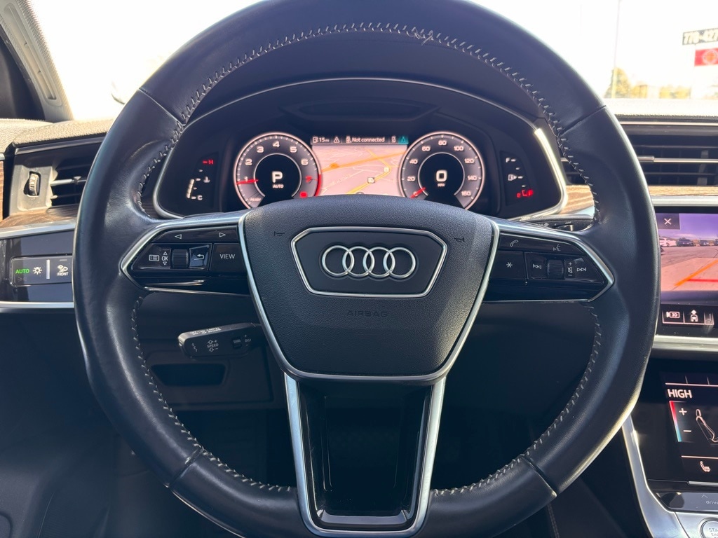 Gray Metallic 2020 Audi A6 2.0T Premium Plus 2.0L 4-Cylinder TFSI 7-Speed Automatic 4D Sedan Black Optic Exterior Package, Convenience Package (Audi Advanced Key, Audi Phone Box w/Wireless Charging, Audi Pre Sense Rear, Audi Side Assist w/Rear Cross Traffic Assist, and Heated 3-Spoke Multifunction Steering Wheel), Driver Assistance Package (Audi Active Lane Assist w/Emergency Assist, Audi Adaptive Cruise Assist, and Traffic Sign Recognition), Premium Plus Package (Audi Virtual Cockpit Plus, Bang & Olufsen 3D Premium Sound System, Contrast Stitching on Door Armrests & Knee Bolster, Headlight Washer System, Matrix-Design Headlights w/Highbeam Assist, Radio: MMI Navigation Plus w/MMI Touch Response, and Top View Camera System w/Virtual 360 View), Sport Package (Sport Suspension (20mm Drop) and Wheels: 20" 5-V-Spoke Bi-Color), 10 Speakers, 4-Wheel Disc Brakes, ABS brakes, Air Conditioning, Alloy wheels, AM/FM radio: SiriusXM, Audi smartphone interface (Apple CarPlay/Android Auto), Auto High-beam Headlights, Auto tilt-away steering wheel, Auto-dimming door mirrors, Auto-dimming Rear-View mirror, Automatic temperature control, Brake assist, Bumpers: body-color, Compass, Delay-off headlights, Driver door bin, Driver vanity mirror, Dual front impact airbags, Dual front side impact airbags, Electronic Stability Control, Emergency communication system: Audi connect CARE, Exterior Parking Camera Rear, Four wheel independent suspension, Front anti-roll bar, Front Bucket Seats, Front Center Armrest, Front dual zone A/C, Front fog lights, Front reading lights, Garage door transmitter: HomeLink, Genuine wood console insert, Genuine wood dashboard insert, Genuine wood door panel insert, Gray/Brown Fine Grain Ash Natural Wood Inlays, Heated door mirrors, Heated Front Seats, Heated front seats, Illuminated entry, Knee airbag, Leather Seating Surfaces, Leather Shift Knob, Low tire pressure warning, Memory seat, Navigation System, Occupant sensing airbag, Outside temperature display, Overhead airbag, Overhead console, Panic alarm, Passenger door bin, Passenger vanity mirror, Power door mirrors, Power driver seat, Power moonroof, Power passenger seat, Power steering, Power windows, Radio data system, Radio: Audi MMI Navigation w/MMI Touch Response, Rain sensing wipers, Rear air conditioning, Rear anti-roll bar, Rear reading lights, Rear seat center armrest, Rear window defroster, Remote keyless entry, Security system, Speed control, Speed-sensing steering, Speed-Sensitive Wipers, Split folding rear seat, Steering wheel memory, Steering wheel mounted audio controls, Tachometer, Telescoping steering wheel, Tilt steering wheel, Traction control, Trip computer, Turn signal indicator mirrors, Variably intermittent wipers, and Wheels: 19" 10-Spoke-Dynamic Design.