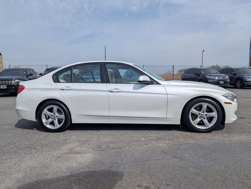 White 2014 BMW 3 Series 328i 2.0L 4-Cylinder DOHC 16V Turbocharged 8-Speed Automatic 4D Sedan Sport Line, 4-Wheel Disc Brakes, 9 Speakers, ABS brakes, Air Conditioning, Alloy wheels, AM/FM radio, Anti-whiplash front head restraints, Auto-dimming door mirrors, Auto-dimming Rear-View mirror, Automatic temperature control, Brake assist, Bumpers: body-color, CD player, Delay-off headlights, Driver door bin, Driver vanity mirror, Dual front impact airbags, Dual front side impact airbags, Electronic Stability Control, Emergency communication system: BMW Assist eCall, Four wheel independent suspension, Front anti-roll bar, Front Bucket Seats, Front Center Armrest, Front dual zone A/C, Front fog lights, Front reading lights, Fully automatic headlights, Garage door transmitter, Genuine wood console insert, Genuine wood dashboard insert, Genuine wood door panel insert, Hands-Free Bluetooth & USB Audio Connection, Heated door mirrors, Hi-Fi Sound System, Illuminated entry, Knee airbag, Leather Shift Knob, Leather steering wheel, Low tire pressure warning, Luxury Line Aesthetic Elements, Memory seat, Occupant sensing airbag, Outside temperature display, Overhead airbag, Passenger door bin, Passenger vanity mirror, Power door mirrors, Power driver seat, Power passenger seat, Power steering, Power windows, Radio data system, Radio: Anti-Theft AM/FM/HD Stereo CD/MP3 Player, Rain sensing wipers, Rear air conditioning, Rear anti-roll bar, Rear reading lights, Rear seat center armrest, Rear window defroster, Remote keyless entry, SensaTec Leatherette Upholstery, Speed control, Speed-sensing steering, Speed-Sensitive Wipers, Split folding rear seat, Sport steering wheel, Steering wheel mounted audio controls, Tachometer, Telescoping steering wheel, Tilt steering wheel, Traction control, Trip computer, Turn signal indicator mirrors, Variably intermittent wipers, and Wheels: 17 x 7.5 Lt Alloy Star-Spoke (Style 393)