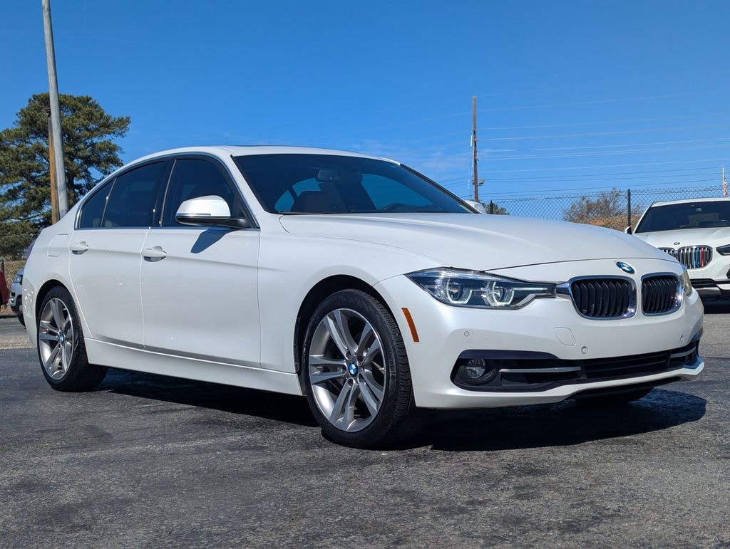 Mineral White Metallic 2018 BMW 3 Series 330i 2.0L 4-Cylinder DOHC 16V Turbocharged 8-Speed Automatic 4D Sedan Convenience Package (Comfort Access Keyless Entry, Lumbar Support, Moonroof, and SiriusXM Satellite Radio), 4-Wheel Disc Brakes, 9 Speakers, ABS brakes, Active Blind Spot Detection, Advanced Real-Time Traffic Information, Air Conditioning, Alloy wheels, AM/FM radio, Anti-whiplash front head restraints, Apple CarPlay Compatibility, Auto-dimming door mirrors, Auto-dimming Rear-View mirror, Automatic temperature control, Brake assist, Bumpers: body-color, CD player, Delay-off headlights, Driver door bin, Driver vanity mirror, Dual front impact airbags, Dual front side impact airbags, Electronic Stability Control, Emergency communication system: BMW Assist eCall, Exterior Parking Camera Rear, Four wheel independent suspension, Front anti-roll bar, Front Bucket Seats, Front Center Armrest, Front dual zone A/C, Front fog lights, Front reading lights, Fully automatic headlights, Garage door transmitter, Genuine wood console insert, Genuine wood dashboard insert, Genuine wood door panel insert, Hands-Free Bluetooth & USB Audio Connection, HD Radio, Heated door mirrors, Heated Front Seats, Hi-Fi Sound System, Illuminated entry, In-Dash CD Player, Instrument Cluster w/Extended Contents, Knee airbag, Leather Shift Knob, Leather steering wheel, Low tire pressure warning, Memory seat, Navigation System, Occupant sensing airbag, Outside temperature display, Overhead airbag, Panic alarm, Park Distance Control, Passenger door bin, Passenger vanity mirror, Power door mirrors, Power driver seat, Power Front Seats, Power passenger seat, Power steering, Power windows, Radio data system, Radio: Anti-Theft AM/FM Audio System, Rain sensing wipers, Rear air conditioning, Rear anti-roll bar, Rear reading lights, Rear seat center armrest, Rear window defroster, Remote keyless entry, Remote Services, Security system, SensaTec Upholstery, Speed control, Speed-sensing steering, Speed-Sensitive Wipers, Split folding rear seat, Sport Seats, Sport steering wheel, Steering wheel mounted audio controls, Tachometer, Telescoping steering wheel, Tilt steering wheel, Traction control, Trip computer, Turn signal indicator mirrors, Variably intermittent wipers, Wheels: 17" x 7.5" Light Alloy (Style 392), and Wheels: 18" x 8" Double-Spoke (Style 397)