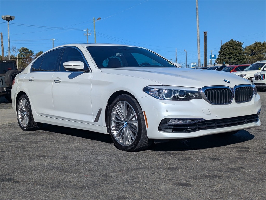 White Metallic 2018 BMW 5 Series 530i 2.0L 4-Cylinder 8-Speed Automatic 4D Sedan 12 Speakers, 4-Wheel Disc Brakes, ABS brakes, Active Blind Spot Detection, Active Driving Assistant, Air Conditioning, Alloy wheels, AM/FM radio, Apple CarPlay Compatibility, Auto tilt-away steering wheel, Auto-dimming door mirrors, Auto-dimming Rear-View mirror, Automatic temperature control, Brake assist, Bumpers: body-color, CD player, Comfort Access Keyless Entry, Delay-off headlights, Driver door bin, Driver vanity mirror, Dual front impact airbags, Dual front side impact airbags, Electronic Stability Control, Emergency communication system: BMW Assist eCall, Enhanced USB & Bluetooth, Exterior Parking Camera Rear, Four wheel independent suspension, Front anti-roll bar, Front Bucket Seats, Front Center Armrest, Front dual zone A/C, Front fog lights, Front reading lights, Fully automatic headlights, Garage door transmitter, Genuine wood console insert, Genuine wood dashboard insert, Genuine wood door panel insert, Gesture Control, Gray Poplar Wood Trim, Head-Up Display, Heated door mirrors, Heated Front Seats, HiFi Sound System, Illuminated entry, In-Dash CD Player, Lane Departure Warning System, Leather Shift Knob, Leather steering wheel, Low tire pressure warning, Lumbar Support, Memory seat, Navigation System, Occupant sensing airbag, Outside temperature display, Overhead airbag, Panic alarm, Park Distance Control, Passenger door bin, Passenger vanity mirror, Power door mirrors, Power driver seat, Power Front Seats, Power moonroof, Power passenger seat, Power steering, Power Tailgate, Power windows, Radio data system, Radio: AM/FM Audio System, Rain sensing wipers, Rear anti-roll bar, Rear reading lights, Rear seat center armrest, Rear window defroster, Remote keyless entry, Security system, SensaTec Leatherette Upholstery, SiriusXM Satellite Radio, Speed control, Speed-sensing steering, Speed-Sensitive Wipers, Split folding rear seat, Sport Seats, Sport steering wheel, Steering wheel memory, Steering wheel mounted audio controls, Tachometer, Telescoping steering wheel, Tilt steering wheel, Traction control, Trip computer, Turn signal indicator mirrors, Variably intermittent wipers, Wheels: 18" x 8" Double-Spoke (Style 634), Wheels: 19" x 8" Fr & 19" x 9" Rr V-Spoke, and WiFi Hotspot.