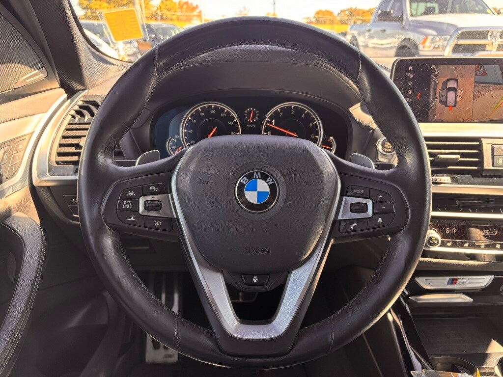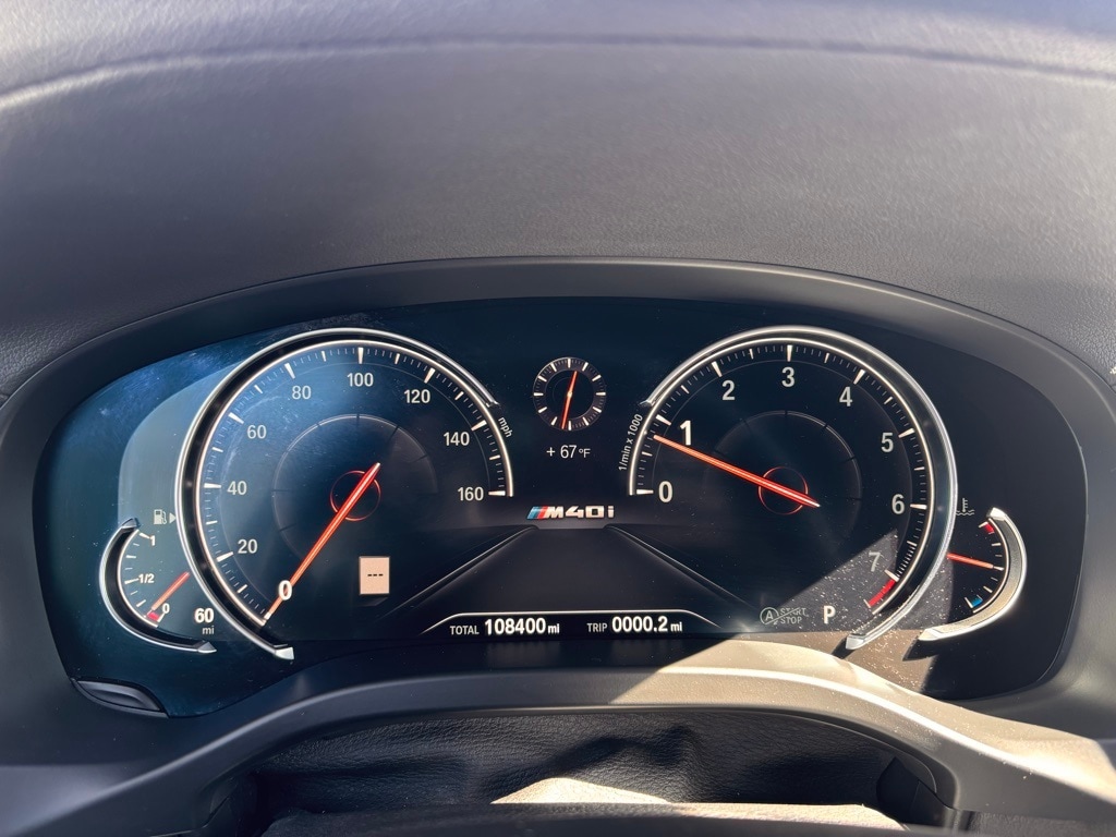 Carbon Black Metallic 2018 BMW X3 M40i I6 8-Speed Automatic 4D Sport Utility Wireless Charging (Enhanced USB & Bluetooth and WiFi Hotspot), 12 Speakers, 12.3" Dynamic Digital Instrument Cluster, 3.385 Axle Ratio, 4-Wheel Disc Brakes, ABS brakes, ACC Stop & Go + Active Driving Assistant Plus, Active Blind Spot Detection, Active Park Distance Control, Adaptive M Suspension, Advanced Real-Time Traffic Information, Air Conditioning, Alloy wheels, Aluminum Interior Trim, AM/FM radio: SiriusXM, Anti-Theft AM/FM Stereo CD/MP3 Player, Apple CarPlay Compatibility, Auto High-beam Headlights, Auto-dimming door mirrors, Auto-dimming Rear-View mirror, Automatic temperature control, Brake assist, Bumpers: body-color, CD player, Delay-off headlights, Driver door bin, Driver vanity mirror, Dual front impact airbags, Dual front side impact airbags, DVD Area Coding (North America), Electronic Stability Control, Emergency communication system: BMW Assist eCall, Exterior Parking Camera Rear, Four wheel independent suspension, Front & Rear Heated Seats, Front anti-roll bar, Front Bucket Seats, Front Center Armrest, Front dual zone A/C, Front fog lights, Front reading lights, Front Ventilated Seats, Fully automatic headlights, Garage door transmitter, Gesture Control, Hands-Free Bluetooth & USB Audio Connection, harman/kardon Surround Sound System, Head-Up Display, Heated door mirrors, Heated Steering Wheel, Hi-Fi Sound System, Illuminated entry, In-Dash CD Player, Knee airbag, Lane Departure Warning System, Low tire pressure warning, Memory seat, Navigation System, Occupant sensing airbag, Outside temperature display, Overhead airbag, Panic alarm, Parking Assistant Plus, Passenger door bin, Passenger vanity mirror, Power door mirrors, Power driver seat, Power Front Seats, Power Liftgate, Power moonroof, Power passenger seat, Power steering, Power windows, Radio Control US, Radio data system, Rain sensing wipers, Rear air conditioning, Rear anti-roll bar, Rear reading lights, Rear seat center armrest, Rear window defroster, Rear window wiper, Remote keyless entry, Remote Services, Roof rack: rails only, Security system, SensaTec Upholstery, SiriusXM Satellite Radio, Speed control, Speed-sensing steering, Speed-Sensitive Wipers, Split folding rear seat, Spoiler, Sport Seats, Sport steering wheel, Steering wheel mounted audio controls, Surround View w/3D View, Tachometer, Telescoping steering wheel, Tilt steering wheel, Traction control, Trip computer, Turn signal indicator mirrors, Variably intermittent wipers, Wheels: 19" x 7.5" M Double-Spoke (Style 698M), and Wheels: 21" x 8.5" Fr/21" x 9.5" Rr (Style 718M)