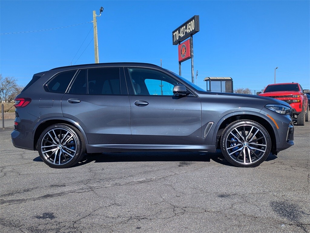 Arctic Gray Metallic 2021 BMW X5 M50i 4.4L V8 DOHC 32V Twin Turbocharged 8-Speed Automatic Sport 4D Sport Utility Connected Package Pro, Parking Assistance Package (Active Park Distance Control, Drive Recorder, Parking Assistant Plus, Rear-View Camera, and Surround View w/3D View), Premium Package (Gesture Control and Head-Up Display), 12 Speakers, 4-Wheel Disc Brakes, ABS brakes, Adaptive suspension, Air Conditioning, Alloy wheels, AM/FM radio: SiriusXM with 360L, AM/FM Stereo, Apple CarPlay & Android Auto Compatibility, Apple CarPlay Compatibility, Auto High-beam Headlights, Auto tilt-away steering wheel, Auto-dimming door mirrors, Auto-dimming Rear-View mirror, Automatic temperature control, Axle Ratio: 3.154, BMW Assist eCall, BMW TeleServices, Brake assist, Bumpers: body-color, Carbon Fiber Trim, Compass, ConnectedDrive Services, Delay-off headlights, Driver door bin, Driver vanity mirror, Dual front impact airbags, Dual front side impact airbags, Electronic Stability Control, Emergency communication system: BMW Assist eCall, Exterior Parking Camera Rear, Four wheel independent suspension, Front anti-roll bar, Front Bucket Seats, Front Center Armrest, Front dual zone A/C, Front fog lights, Front Massaging Seats, Front reading lights, Front Ventilated Seats, Fully automatic headlights, Garage door transmitter, harman/kardon Surround Sound System, harman/kardon® Speakers, Head restraints memory, Heated door mirrors, Heated Front Seats, Heated front seats, Heated Front Seats w/Armrests & Steering Wheel, Illuminated entry, Increased Top Speed Limiter, Knee airbag, Leather Shift Knob, Leather steering wheel, Live Cockpit Pro w/Navigation, Low tire pressure warning, Memory seat, Multi-Contour Seats, Navigation System, Occupant sensing airbag, Outside temperature display, Overhead airbag, Panic alarm, Passenger door bin, Passenger vanity mirror, Power adjustable front head restraints, Power door mirrors, Power driver seat, Power moonroof, Power passenger seat, Power steering, Power windows, Radio data system, Rain sensing wipers, Rear air conditioning, Rear anti-roll bar, Rear dual zone A/C, Rear reading lights, Rear seat center armrest, Rear window defroster, Rear window wiper, Remote keyless entry, Roof rack: rails only, Security system, SiriusXM Satellite Radio w/360L, Speed control, Speed-sensing steering, Speed-Sensitive Wipers, Split folding rear seat, Spoiler, Sport steering wheel, Steering wheel memory, Steering wheel mounted audio controls, Tachometer, Telescoping steering wheel, Tilt steering wheel, Traction control, Trailer Hitch, Trip computer, Turn signal indicator mirrors, Variably intermittent wipers, Ventilated front seats, Vernasca Leather Upholstery, Wheels: 20" x 9" M Star-Spoke Bi-Color, and Wheels: 22" x 9.5" Fr & 22" x 10.5" Rr M Double-Spoke.