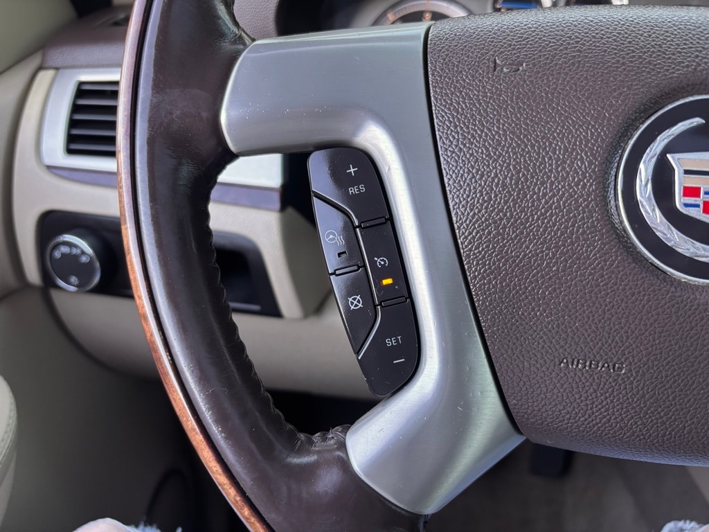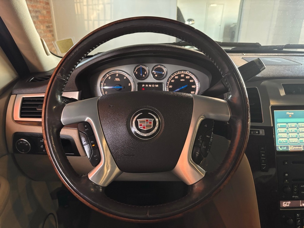 Black Raven 2009 Cadillac Escalade Vortec 6.2L V8 SFI 6-Speed Automatic HD Electronic with Overdrive 4D Sport Utility 10 Speakers, 3.42 Rear Axle Ratio, 3rd row seats: split-bench, 4-Wheel Disc Brakes, ABS brakes, Adaptive suspension, Adjustable pedals, Air Conditioning, Alloy wheels, AM/FM radio: XM, AM/FM Stereo w/Navigation, Auto tilt-away steering wheel, Auto-dimming door mirrors, Auto-dimming Rear-View mirror, Auto-leveling suspension, Automatic temperature control, Bodyside moldings, Bumpers: body-color, CD player, Compass, Delay-off headlights, Driver door bin, Driver vanity mirror, Dual front impact airbags, DVD-Audio, Electronic Stability Control, Emergency communication system: OnStar Directions & Connections, Exterior Parking Camera Rear, Front anti-roll bar, Front Bucket Seats, Front Center Armrest w/Storage, Front dual zone A/C, Front fog lights, Front reading lights, Front wheel independent suspension, Fully automatic headlights, Garage door transmitter, Heated door mirrors, Heated Front Bucket Seats, Heated front seats, Heated rear seats, High intensity discharge headlights: Xenon, Illuminated entry, Leather steering wheel, Low tire pressure warning, Magnetic Ride Control Suspension, Memory seat, Navigation System, Occupant sensing airbag, Outside temperature display, Overhead airbag, Overhead console, Panic alarm, Passenger door bin, Passenger vanity mirror, Pedal memory, Power door mirrors, Power driver seat, Power Liftgate, Power passenger seat, Power steering, Power windows, Radio data system, Rain sensing wipers, Rear air conditioning, Rear anti-roll bar, Rear audio controls, Rear reading lights, Rear window defroster, Rear window wiper, Remote CD player, Remote keyless entry, Roof rack, Security system, Speed control, Split folding rear seat, Spoiler, Steering wheel memory, Steering wheel mounted audio controls, Tachometer, Tilt steering wheel, Traction control, Trip computer, Turn signal indicator mirrors, Variably intermittent wipers, and XM NavTraffic.