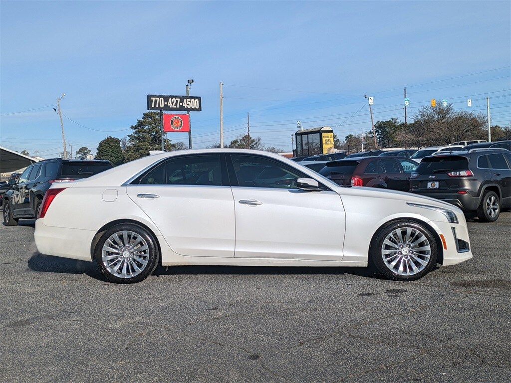 Crystal White Tricoat 2015 Cadillac CTS 3.6L Luxury 3.6L V6 DI DOHC VVT 8-Speed Automatic 4D Sedan Driver Awareness Package (Forward Collision Alert, IntelliBeam Headlamps, Lane Change Alert, Lane Departure Warning System, Lane Keep Assist, Rainsense Wipers, Rear Cross Traffic Alert, Rear Vision Camera, and Side Blind Zone Alert), Preferred Equipment Group 1SN (High-Intensity Discharge Headlamps and UltraView Power Sunroof), Seating Package (Heated Driver & Front Passenger Seats, Heated Steering Wheel Rim, Heated/Ventilated Driver & Front Passenger Seats, LED Accent Lighting, Outside Heated Power-Adjustable Mirrors, Power Tilt & Telescoping Steering Column, and Split-Folding Rear Seat), 13 Speakers, 4-Wheel Disc Brakes, ABS brakes, Air Conditioning, Alloy wheels, AM/FM radio: SiriusXM, Anti-whiplash front head restraints, Auto High-beam Headlights, Auto-dimming door mirrors, Auto-dimming Rear-View mirror, Automatic temperature control, Bose Centerpoint Surround Sound 13-Speaker System, Brake assist, Bumpers: body-color, Compass, Delay-off headlights, Driver door bin, Driver vanity mirror, Dual front impact airbags, Dual front side impact airbags, Electronic Stability Control, Emergency communication system: OnStar Directions & Connections, Exterior Parking Camera Rear, Four wheel independent suspension, Front anti-roll bar, Front Bucket Seats, Front Center Armrest w/Storage, Front dual zone A/C, Front License Plate Bracket, Front reading lights, Fully automatic headlights, Garage door transmitter, Genuine wood console insert, Genuine wood dashboard insert, Genuine wood door panel insert, Heated door mirrors, Heated front seats, Heated steering wheel, High-Intensity Discharge Headlights, Illuminated entry, Knee airbag, Leather Seating Surfaces, Leather Shift Knob, Leather steering wheel, Low tire pressure warning, Memory seat, Navigation System, Occupant sensing airbag, Outside temperature display, Overhead airbag, Panic alarm, Passenger door bin, Passenger vanity mirror, Power door mirrors, Power driver seat, Power moonroof: UltraView, Power passenger seat, Power steering, Power windows, Premium audio system: Cadillac CUE, Radio data system, Radio: Cadillac CUE Info/Media Cont/Embedded Nav, Rain sensing wipers, Rear anti-roll bar, Rear reading lights, Rear seat center armrest, Rear side impact airbag, Rear window defroster, Remote keyless entry, Security system, SiriusXM & HD Radio, Speed control, Speed-sensing steering, Split folding rear seat, Steering wheel mounted audio controls, Tachometer, Telescoping steering wheel, Tilt steering wheel, Traction control, Trip computer, Turn signal indicator mirrors, Variably intermittent wipers, Ventilated front seats, Voltmeter, Wheels: 17" x 8.5" Ultra-Bright Machined Finish, and Wheels: 18" x 8.5" Polished Aluminum.
