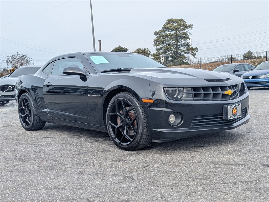 Black 2011 Chevrolet Camaro SS 6.2L V8 SFI 6-Speed Manual 2D Coupe Preferred Equipment Group 2SS (2 Front Cup Holders, 3-Spoke Leather-Wrapped Steering Wheel, 4-Wheel Antilock 4-Wheel Disc Brakes, Analog Instrumentation, Audio System Feature USB Port, Auxiliary Multi-Function Gauges, Bluetooth® For Phone, Boston Acoustics Premium 9-Speaker Audio System, Carpeted Front Floor Mats, Electric Rear-Window Defogger, Electronic Cruise Control, Head-Up Display, Heated Driver & Front Passenger Seats, Inside Rearview Autodimming Mirror, LATCH System, Leather-Appointed Seat Trim, Leather-Wrapped Shift Knob, Maintenance-Free Battery, Manual Rake & Telescopic Steering Column, OnStar 6 Months Directions & Connections Plan, Power Programmable Door Locks, Remote Keyless Entry, StabiliTrak, Stainless-Steel Dual-Outlet Exhaust, Steering Wheel Mounted Audio Controls, Universal Home Remote, Wireless PDIM, and XM Radio), RS Package (Body-Color Roof Ditch Molding and High-Intensity Discharge Headlamps), 20" x 8" Front & 20" x 9" Rear Aluminum Wheels, 20" x 8" Front & 20" x 9" Rear Polished Alum Wheels, 4-Wheel Disc Brakes, 9 Speakers, ABS brakes, Air Conditioning, Alloy wheels, AM/FM radio: XM, AM/FM/CD-ROM/MP3, Auto-dimming door mirrors, Auto-dimming Rear-View mirror, Brake assist, Bumpers: body-color, CD player, Compass, Delay-off headlights, Driver door bin, Driver vanity mirror, Dual front impact airbags, Dual front side impact airbags, Electronic Stability Control, Emergency communication system: OnStar Directions & Connections, Four wheel independent suspension, Front anti-roll bar, Front Bucket Seats, Front Center Armrest, Front fog lights, Front License Plate Bracket, Front reading lights, Front Sport Bucket Seats, Fully automatic headlights, Garage door transmitter, Heads-Up Display, Heated door mirrors, Heated front seats, Hurst Short-Throw Shifter, Illuminated entry, Leather Shift Knob, Leather-Appointed Seating Surfaces, Low tire pressure warning, Occupant sensing airbag, Outside temperature display, Overhead airbag, Panic alarm, Passenger door bin, Passenger vanity mirror, Power door mirrors, Power driver seat, Power passenger seat, Power steering, Power windows, Radio data system, Rear anti-roll bar, Rear Parking Sensors, Rear window defroster, Remote keyless entry, Security system, Speed control, Speed-sensing steering, Spoiler, Steering wheel mounted audio controls, Tachometer, Telescoping steering wheel, Tilt steering wheel, Traction control, Trip computer, Variably intermittent wipers, and Voltmeter.