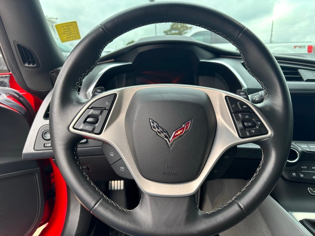 Torch Red 2015 Chevrolet Corvette Stingray Z51 6.2L V8 7-Speed Manual with Active Rev Matching 2D Coupe Battery Protection Package, Memory Package, Preferred Equipment Group 2LT (2LT Interior Trim, Auto-Dimming Inside Frameless Rearview Mirror, Body-Color Outside Heated Power-Adjustable Mirrors, Bose Advanced 10-Speaker Audio System Feature, Cargo Net, Head-Up Display, Heated & Vented Driver & Passenger Seats, Luggage Shade, Power Lumbar/Bolster Seat Adjusters, Theft Deterrent System, and Universal Home Remote), 4-Wheel Disc Brakes, 8-Way Driver & Passenger Seat Adjusters, 9 Speakers, ABS brakes, Air Conditioning, Alloy wheels, AM/FM radio: SiriusXM, Automatic temperature control, Bose Premium 9-Speaker Audio System Feature, Bumpers: body-color, Compass, Delay-off headlights, Driver door bin, Driver vanity mirror, Dual front impact airbags, Dual front side impact airbags, Electronic Stability Control, Emergency communication system: OnStar Directions & Connections, Exterior Parking Camera Rear, Four wheel independent suspension, Front anti-roll bar, Front Bucket Seats, Front Center Armrest, Front dual zone A/C, Front License Plate Bracket, Front reading lights, Fully automatic headlights, GT Bucket Seats, Heated door mirrors, High-Intensity Discharge Headlights, Illuminated entry, Leather Shift Knob, Leather steering wheel, Low tire pressure warning, Mulan Perforated Leather Seating Surfaces, Occupant sensing airbag, Outside temperature display, Painted Body-Color Carbon Fiber Removable Roof Panel, Panic alarm, Passenger door bin, Passenger vanity mirror, Performance Data & Video Recorder, Power door mirrors, Power driver seat, Power passenger seat, Power steering, Power windows, Premium audio system: Chevrolet MyLink, Radio data system, Radio: Chevrolet MyLink w/Navigation, Rear anti-roll bar, Rear window defroster, Red Painted Calipers, Remote keyless entry, Speed control, Speed-sensing steering, Spoiler, Sport steering wheel, Steering wheel mounted audio controls, Tachometer, Telescoping steering wheel, Tilt steering wheel, Traction control, Trip computer, Variably intermittent wipers, Voltmeter, Wheels: 19" x 8.5" Fr & 20" x 10" Rr 5-Split Spoke, and Wheels: 19" x 8.5" Fr & 20" x 10" Rr Aluminum.