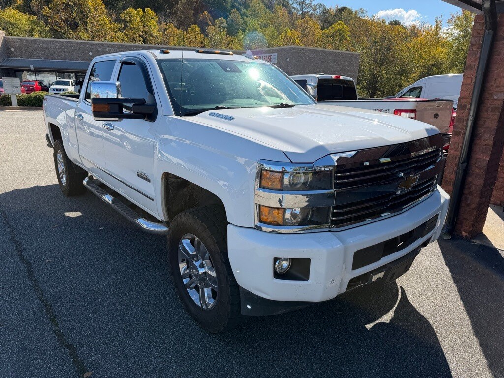 Summit White 2015 Chevrolet Silverado 2500HD High Country Duramax 6.6L V8 Turbodiesel Allison 1000 6-Speed Automatic 4D Crew Cab Driver Alert Package (Ultrasonic Front & Rear Park Assist), Duramax Plus Package (Power-Adjustable Pedals), Heavy-Duty Trailering Equipment, Preferred Equipment Group 3LZ (110-Volt AC Power Outlet, 4.2" Diagonal Color Display Driver Info Center, 6" Rectangular Chrome Tubular Assist Steps (LPO), Auto-Dimming Inside Rear-View Mirror, Bright Sill Plates, Chrome Bodyside Moldings, Chrome Door Handles, Chrome Mirror Caps, Color-Keyed Carpeting Floor Covering, Deep-Tinted Glass, Driver & Front Passenger Visors, Dual-Zone Automatic Climate Control, Electric Rear-Window Defogger, Electronic Shift Transfer Case, EZ-Lift & Lower Tailgate, Front Halogen Fog Lamps, Heated Power-Adjustable Outside Mirrors, Integrated Trailer Brake Controller, Leather-Wrapped Steering Wheel, Manual Tilt-Wheel/Telescoping Steering Column, OnStar 4G LTE Wi-Fi Hotspot, OnStar 6 Months Directions/Connections Plan, Power Sliding Rear Window w/Defogger, Power Windows w/Driver Express Up & Down, Rear 60/40 Folding Bench Seat (Folds Up), Rear Vision Camera w/Dynamic Guide Lines, Rear Wheelhouse Liners, Remote Keyless Entry, Remote Vehicle Starter System, Single Slot CD/MP3 Player, Spray-On Pickup Box Bed Liner, Steering Wheel Audio Controls, Theft Deterrent System (Unauthorized Entry), and Universal Home Remote), Standard Suspension Package, 4 Movable Upper Cargo Tie Downs, 4-Wheel Disc Brakes, 4" Round Chromed Tubular Assist Steps (LPO), 6" Chrome Tubular Rectangular Assist Step Delete, 7 Speakers, ABS brakes, Air Conditioning, Alloy wheels, AM/FM radio, Auto-dimming door mirrors, Auto-dimming Rear-View mirror, Automatic temperature control, Black Recovery Hooks, Bluetooth® For Phone, Body-Color Front Bumper, Body-Color Rear Bumper, Bodyside moldings, BOSE Sound w/7 Speaker System, Brake assist, Bumpers: body-color, Camper & 5th Wheel Trailer Wiring Provisions, Carpeted Front & Rear Floor Mats, CD player, Chrome Power-Adjustable Heated Outside Mirrors, Chrome wheels, Compass, Delay-off headlights, Driver door bin, Driver vanity mirror, Dual front impact airbags, Dual front side impact airbags, Electronic Stability Control, Emergency communication system: OnStar Directions & Connections, Engine Block Heater, Exhaust Brake, Exterior Parking Camera Rear, Floor Mounted Reconfigurable Console, Front anti-roll bar, Front Bucket Seats, Front Center Armrest w/Storage, Front dual zone A/C, Front fog lights, Front Full Feature Bucket Seats, Front License Plate Kit, Front reading lights, Front wheel independent suspension, Fully automatic headlights, Garage door transmitter, Heated & Cooled Front Bucket Seats, Heated door mirrors, Heated front seats, Heated Leather Steering Wheel (DISC), Illuminated entry, LED Cargo Box Lighting, Low tire pressure warning, Memory seat, Navigation System, Occupant sensing airbag, Outside temperature display, Overhead airbag, Overhead console, Panic alarm, Passenger door bin, Passenger vanity mirror, Perforated Leather Appointed Seat Trim, Power door mirrors, Power driver seat, Power passenger seat, Power steering, Power Sunroof, Power windows, Premium audio system: Chevrolet MyLink, Radio: AM/FM w/Chevrolet MyLink & Nav, Rear reading lights, Rear seat center armrest, Rear step bumper, Rear window defroster, Remote keyless entry, Rubber Bed Mat, Security system, SiriusXM Satellite Radio, Smoked Amber Roof Marker Lamps, Speed control, Split folding rear seat, Spray-on Bedliner Delete, Steering wheel mounted audio controls, Tachometer, Telescoping steering wheel, Tilt steering wheel, Traction control, Trip computer, Turn signal indicator mirrors, Variably intermittent wipers, Ventilated front seats, Voltmeter, and Wheels: 20" Chromed Aluminum.