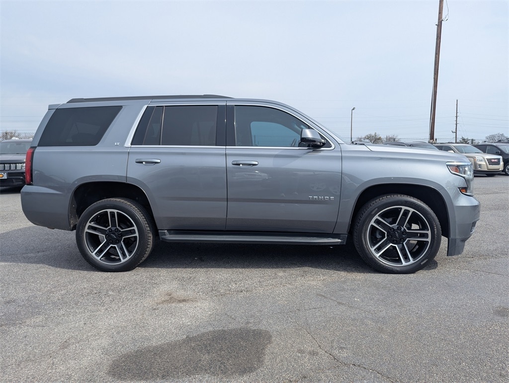 Satin Steel Metallic 2019 Chevrolet Tahoe LT EcoTec3 5.3L V8 6-Speed Automatic Electronic with Overdrive 4D Sport Utility Enhanced Driver Alert Package (Y86) (Forward Collision Alert, IntelliBeam Headlamps, Lane Keep Assist w/Lane Departure Warning, and Low Speed Forward Automatic Braking), License Plate Front Mounting Package, Preferred Equipment Group 1LT (1st & 2nd Row Color-Keyed Carpeted Floor Mats, 2nd Row 60/40 Split-Folding Manual Bench, 3rd Row Manual 60/40 Split-Folding Fold Flat Bench, 4-Wheel Antilock Disc Brakes w/Brake Assist, 5 12-Volt Auxiliary Power Outlets, Auto-Dimming Inside Rear-View Mirror, Black Assist Steps, Bose Premium 9-Speaker System, Cargo Net, Color-Keyed Carpeting Floor Covering, Driver Inboard & Front Passenger Airbags, Electronic Cruise Control w/Set & Resume Speed, Extended-Range Remote Keyless Entry, Floor Console, Front Passenger 6-Way Power Seat Adjuster, Leather-Wrapped Steering Wheel, Memory Settings, Power Liftgate, Power-Adjustable Accelerator & Brake Pedals, Rear Park Assist w/Audible Warning, Remote Vehicle Start, Roof-Mounted Luggage Rack Side Rails, SiriusXM Radio, and Universal Home Remote), Premium Smooth Ride Suspension Package, 18" x 8.5" Aluminum Wheels, 2nd Row Manual Bucket Seats, 3.08 Rear Axle Ratio, 3rd row seats: split-bench, 4-Wheel Disc Brakes, 9 Speakers, ABS brakes, Adjustable pedals, Air Conditioning, Alloy wheels, AM/FM radio: SiriusXM, Apple CarPlay/Android Auto, Auto High-beam Headlights, Auto-dimming Rear-View mirror, Automatic temperature control, Bluetooth® For Phone, Brake assist, Bumpers: body-color, CD player, Compass, Delay-off headlights, Driver door bin, Driver vanity mirror, Dual front impact airbags, Dual front side impact airbags, Electronic Stability Control, Emergency communication system: OnStar and Chevrolet connected services capable, Exterior Parking Camera Rear, Front anti-roll bar, Front Bucket Seats, Front Center Armrest, Front dual zone A/C, Front Heated Reclining Bucket Seats, Front reading lights, Front wheel independent suspension, Fully automatic headlights, Garage door transmitter, HD Radio, Heated door mirrors, Heated front seats, Illuminated entry, Leather-Appointed Seat Trim, Low tire pressure warning, Memory seat, Occupant sensing airbag, Outside temperature display, Overhead airbag, Overhead console, Panic alarm, Passenger door bin, Passenger vanity mirror, Pedal memory, Power door mirrors, Power driver seat, Power passenger seat, Power steering, Power Sunroof, Power windows, Premium audio system: Chevrolet MyLink, Radio: Chevrolet Infotainment AM/FM Stereo, Radio: Chevrolet Infotainment AM/FM Stereo w/Nav, Rain sensing wipers, Rear air conditioning, Rear anti-roll bar, Rear reading lights, Rear seat center armrest, Rear window defroster, Rear window wiper, Remote keyless entry, Roof rack: rails only, Security system, Single-Slot CD/MP3 Player, SiriusXM NavTraffic, Speed control, Speed-sensing steering, Split folding rear seat, Spoiler, Steering wheel mounted audio controls, Tachometer, Telescoping steering wheel, Tilt steering wheel, Traction control, Trip computer, Variably intermittent wipers, Voltmeter, Wheels: 22" 5-Spoke Bright Machined (LPO), and Wheels: 22" x 9" Steel.
