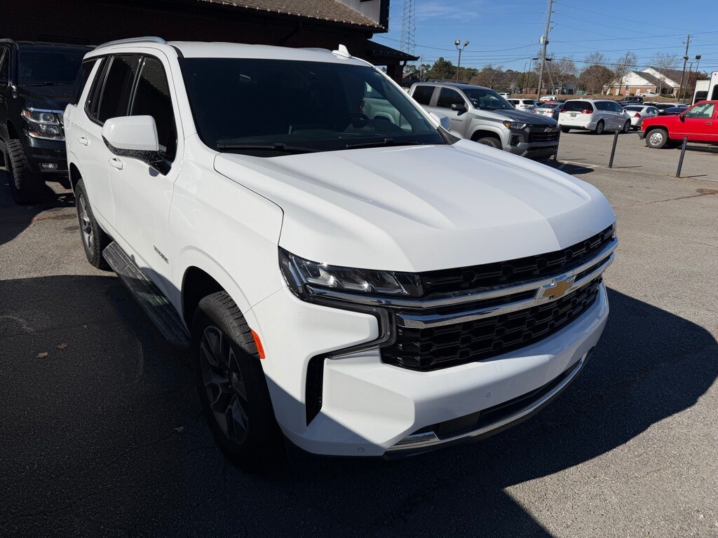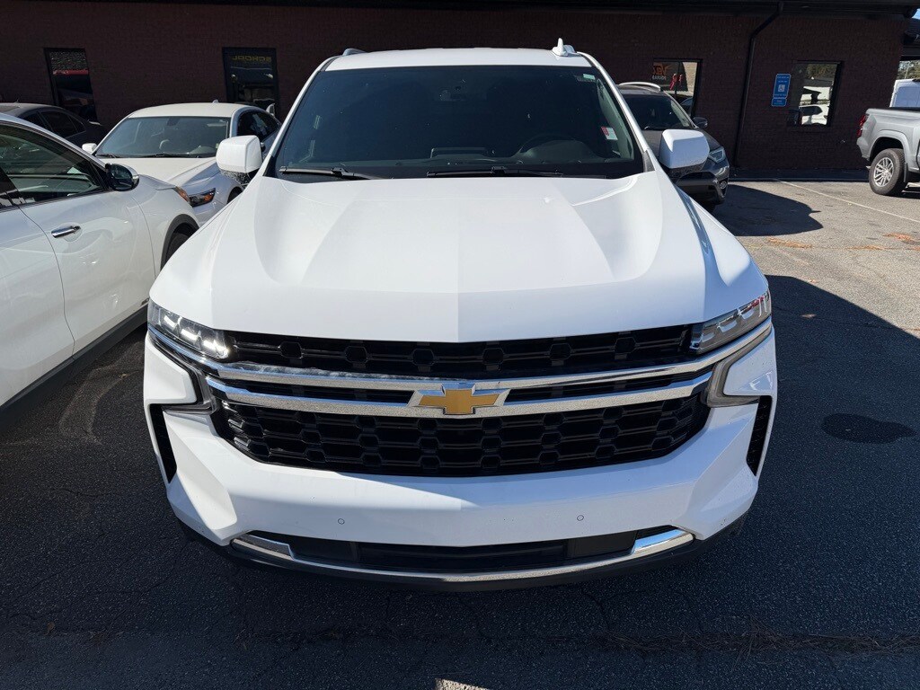 Summit White 2022 Chevrolet Tahoe LS EcoTec3 5.3L V8 10-Speed Automatic with Overdrive 4D Sport Utility Preferred Equipment Group 1LS (1st & 2nd Row Color-Keyed Carpeted Floor Mats, Automatic Stop/Start, Color-Keyed Carpeting Floor Covering, Driver & Front Outboard Passenger Airbags, Floor Console w/Storage Area, Leather-Wrapped Steering Wheel, LED Daytime Running Lamps, Remote Start, SiriusXM Radio w/360L, and Start/Stop System Disable Button), 3.23 Rear Axle Ratio, 3rd row seats: split-bench, 4-Wheel Disc Brakes, 6 Speakers, 6-Speaker Audio System Feature, ABS brakes, Air Conditioning, Alloy wheels, AM/FM radio: SiriusXM with 360L, Apple CarPlay/Android Auto, Auto High-beam Headlights, Automatic temperature control, Brake assist, Bumpers: body-color, Compass, Delay-off headlights, Driver door bin, Driver vanity mirror, Dual front impact airbags, Dual front side impact airbags, Electronic Stability Control, Emergency communication system: OnStar and Chevrolet connected services capable, Four wheel independent suspension, Front anti-roll bar, Front Bucket Seats, Front Center Armrest, Front dual zone A/C, Front High-Back Reclining Bucket Seats, Front reading lights, Fully automatic headlights, Heated door mirrors, Illuminated entry, Infotainment Display, Leather steering wheel, Low tire pressure warning, Not Equipped w/Front & Rear Park Assist, Not Equipped w/Steering Column Lock, Occupant sensing airbag, Outside temperature display, Overhead airbag, Overhead console, Panic alarm, Passenger door bin, Passenger vanity mirror, Power door mirrors, Power driver seat, Power passenger seat, Power steering, Power windows, Premium audio system: Chevrolet Infotainment System 3, Premium Cloth Seat Trim, Premium Smooth Ride Suspension, Radio: Chevrolet Infotainment 3 System, Rain sensing wipers, Rear air conditioning, Rear anti-roll bar, Rear reading lights, Rear seat center armrest, Rear window defroster, Rear window wiper, Remote keyless entry, Roof rack: rails only, Security system, Speed control, Speed-sensing steering, Split folding rear seat, Spoiler, Steering wheel mounted audio controls, Tachometer, Telescoping steering wheel, Tilt steering wheel, Traction control, Trip computer, Variably intermittent wipers, Voltmeter, Wheels: 18" x 8.5" Bright Silver Painted Aluminum, and Wheels: 20" x 9" Painted Aluminum.