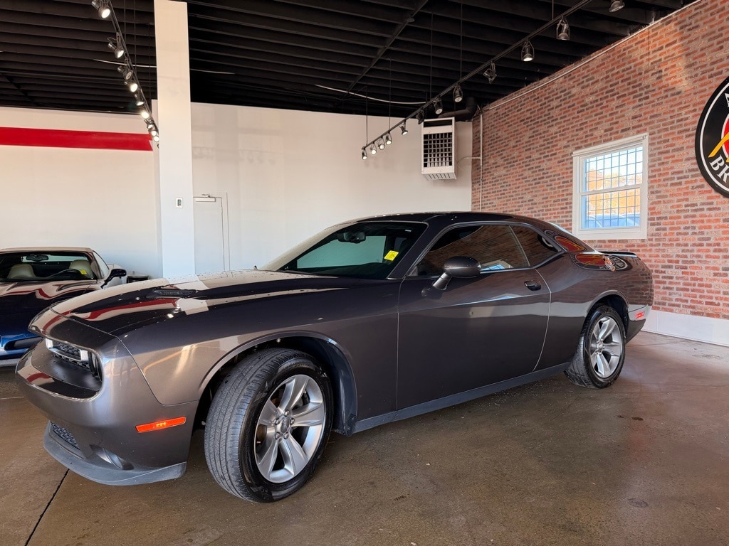 Granite Crystal Metallic Clearcoat 2018 Dodge Challenger SXT 3.6L V6 24V VVT 8-Speed Automatic 2D Coupe Quick Order Package 21A SXT, 1-Yr SiriusXM Radio Service, 4-Wheel Disc Brakes, 6 Speakers, ABS brakes, Air Conditioning, Alloy wheels, AM/FM radio, Anti-whiplash front head restraints, Apple CarPlay, Apple CarPlay/Android Auto, Auto-dimming Rear-View mirror, Automatic temperature control, Brake assist, Bumpers: body-color, Compass, Delay-off headlights, Driver door bin, Driver vanity mirror, Dual front impact airbags, Dual front side impact airbags, Electronic Stability Control, For More Info, Call 800-643-2112, Four wheel independent suspension, Front anti-roll bar, Front Bucket Seats, Front Center Armrest, Front dual zone A/C, Front reading lights, Fully automatic headlights, Google Android Auto, GPS Antenna Input, Heated door mirrors, Houndstooth Cloth Sport Seats, Illuminated entry, Integrated Voice Command w/Bluetooth, Leather Shift Knob, Low tire pressure warning, Media Hub (2 USB, AUX), Outside temperature display, Overhead airbag, Overhead console, Panic alarm, ParkView Rear Back-Up Camera, Passenger door bin, Passenger vanity mirror, Power door mirrors, Power driver seat, Power steering, Power windows, Radio data system, Radio: Uconnect 4 w/7" Display, Rear anti-roll bar, Rear reading lights, Rear seat center armrest, Rear window defroster, Remote keyless entry, Security system, SiriusXM Satellite Radio, Speed control, Speed-sensing steering, Split folding rear seat, Spoiler, Steering wheel mounted audio controls, Tachometer, Telescoping steering wheel, Tilt steering wheel, Traction control, Trip computer, USB Host Flip, Variably intermittent wipers, and Wheels: 18" x 7.5" Cast Aluminum.
