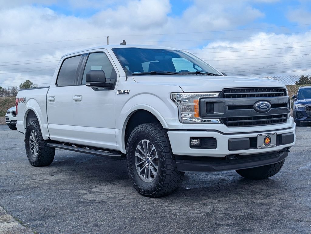 Oxford White 2019 Ford F-150 XLT 3.5L V6 EcoBoost 10-Speed Automatic 4D SuperCrew Equipment Group 302A Luxury (Auto-Dimming Rear-View Mirror, Power Glass Heated Sideview Mirrors, Rear Window Defroster, Remote Start System, and SiriusXM Radio), FX4 Off-Road Package (Tray Style Floor Liner), Max Trailer Tow Package (Class IV Trailer Hitch Receiver, Engine Oil Cooler, Extended Range 36 Gallon Fuel Tank, Integrated Trailer Brake Controller, Pro Trailer Backup Assist, and Upgraded Front Stabilizer Bar), XLT Power Equipment Group (LED Box Lighting and Power-Sliding Rear Window), XLT Sport Appearance Package (2-Bar Style Grille w/2 Minor Bars Painted Dark, Accent-Color Step Bars, Body-Color Door & Tailgate Handles, Body-Color Front & Rear Bumpers, Box Side Decals, Single-Tip Chrome Exhaust, and Wheels: 18" 6-Spoke Machined-Aluminum), 110V/400W Outlet, 4-Wheel Disc Brakes, 6 Speakers, ABS brakes, Air Conditioning, Alloy wheels, AM/FM radio, AppLink/Apple CarPlay and Android Auto, Auto High-beam Headlights, Brake assist, Bumpers: chrome, Compass, Delay-off headlights, Driver door bin, Driver vanity mirror, Dual front impact airbags, Dual front side impact airbags, Electronic Stability Control, Emergency communication system: SYNC 3 911 Assist, Exterior Parking Camera Rear, Front anti-roll bar, Front Center Armrest w/Storage, Front fog lights, Front License Plate Bracket, Front wheel independent suspension, Fully automatic headlights, Illuminated entry, Low tire pressure warning, Occupant sensing airbag, Outside temperature display, Overhead airbag, Panic alarm, Passenger door bin, Passenger vanity mirror, Power door mirrors, Power steering, Power windows, Radio data system, Radio: AM/FM Stereo w/6 Speakers, Rear step bumper, Remote keyless entry, Security system, Speed control, Speed-sensing steering, Split folding rear seat, Steering wheel mounted audio controls, SYNC 3, Tachometer, Telescoping steering wheel, Tilt steering wheel, Traction control, Variably intermittent wipers, Voice-Activated Touchscreen Navigation, Voltmeter, and Wheels: 17" Silver Painted Aluminum.