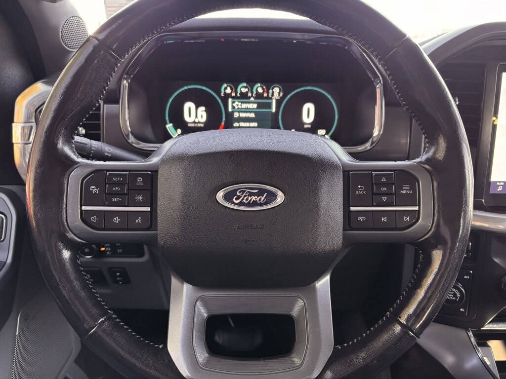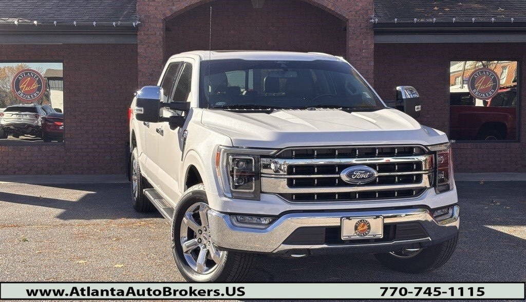 White Metallic 2021 Ford F-150 Lariat 3.5L V6 EcoBoost 10-Speed Automatic 4D SuperCrew Equipment Group 502A High (2nd Row Heated Seats, Heated Steering Wheel, Leather-Trimmed Bucket Seats, LED Projector w/Dynamic Bending Headlamps, Onboard 400W Outlet, Power Glass Sideview Mirr w/Chrome Skull Caps, Power Tilt/Telescoping Steering Column w/Memory, Radio: B&O Sound System by Bang & Olufsen, Rain-Sensing Wipers, and Universal Garage Door Opener), Ford Co-Pilot360 Assist 2.0 (Connected Built-In Navigation, Evasive Steering Assist, Intelligent Adaptive Cruise Control w/Stop & Go, Intersection Assist, and Speed Sign Recognition), Lariat Chrome Appearance Package (6" Chrome Running Board, Chrome 2-Bar Grille w/4 Minor Bars, Chrome Door & Tailgate Handles w/Body-Color Bezel, Chrome Single-Tip Exhaust, Chrome Skull Caps on Exterior Mirrors, and Wheels: 18" Chrome-Like PVD), Max Trailer Tow Package (Class IV Trailer Hitch Receiver, Extended Range 36 Gallon Fuel Tank, Integrated Trailer Brake Controller, and Pro Trailer Backup Assist), 18" Machined-Aluminum Wheels, 360 Degree Camera, 4-Wheel Disc Brakes, 7 Speakers, ABS brakes, Adjustable pedals, Air Conditioning, Alloy wheels, AM/FM radio: SiriusXM with 360L, Auto High-beam Headlights, Auto-dimming door mirrors, Auto-dimming Rear-View mirror, Automatic temperature control, Brake assist, Bumpers: chrome, Compass, Delay-off headlights, Driver door bin, Driver vanity mirror, Dual front impact airbags, Dual front side impact airbags, Electronic Stability Control, Emergency communication system: SYNC 4 911 Assist, Exterior Parking Camera Rear, Front anti-roll bar, Front Center Armrest w/Storage, Front dual zone A/C, Front fog lights, Front License Plate Bracket, Front reading lights, Front wheel independent suspension, Fully automatic headlights, Heated door mirrors, Heated front seats, Illuminated entry, Leather-Trimmed 40/20/40 Front Seat, LED Sideview Mirror Spotlights, Low tire pressure warning, Memory seat, Navigation system: Connected Navigation (90-Day Trial), Occupant sensing airbag, Outside temperature display, Overhead airbag, Overhead console, Panic alarm, Passenger door bin, Passenger vanity mirror, Pedal memory, Power door mirrors, Power driver seat, Power passenger seat, Power steering, Power Telescoping/Glass/Folding Trailer Tow Mirrors, Power windows, Radio data system, Radio: AM/FM SiriusXM w/360L, Rear reading lights, Rear seat center armrest, Rear step bumper, Rear window defroster, Remote keyless entry, Security system, Speed control, Speed-sensing steering, Split folding rear seat, Steering wheel mounted audio controls, SYNC 4 w/Enhanced Voice Recognition, Tachometer, Telescoping steering wheel, Tilt steering wheel, Traction control, Trip computer, Turn signal indicator mirrors, Twin Panel Moonroof, Variably intermittent wipers, Ventilated front seats, Voltmeter, and Wheels: 20" Chrome-Like PVD.