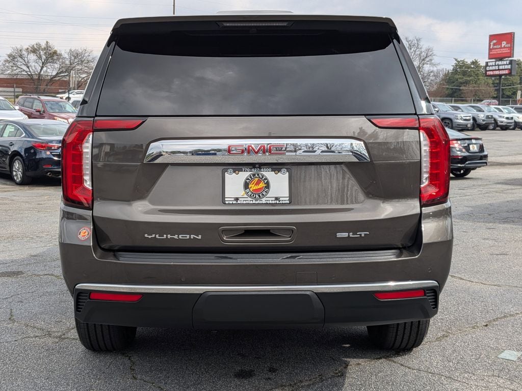 Smokey Quartz Metallic 2021 GMC Yukon SLT EcoTec3 5.3L V8 10-Speed Automatic with Overdrive 4D Sport Utility License Plate Front Mounting Package, Preferred Equipment Group 4SA (12-Way Power Seat Adjusters, 2 Presets For Power Driver Seat, Bose 9-Speaker Stereo Audio System Feature, Bright Chrome Bodyside Moldings, Bright Front & Rear Door Sill Plates, Chrome Door Handles w/Body-Color Strip, Hands-Free Power Programmable Rear Liftgate, Heated & Ventilated Driver & Front Passenger Seats, Heated Driver & Front Passenger Seats, Inside Rear-View Auto-Dimming Mirror, Safety Alert Seat, and Universal Home Remote), 3.23 Rear Axle Ratio, 3rd row seats: split-bench, 4-Wheel Disc Brakes, 9 Speakers, ABS brakes, Air Conditioning, Alloy wheels, AM/FM radio: SiriusXM with 360L, Apple CarPlay/Android Auto, Auto High-beam Headlights, Auto-dimming Rear-View mirror, Automatic Emergency Braking, Automatic temperature control, Bodyside moldings, Brake assist, Bumpers: body-color, Compass, Delay-off headlights, Driver door bin, Driver vanity mirror, Dual front impact airbags, Dual front side impact airbags, Electronic Stability Control, Emergency communication system: OnStar and GMC connected services capable, Following Distance Indicator, Forward Collision Alert, Four wheel independent suspension, Front & Rear Park Assist, Front anti-roll bar, Front Bucket Seats, Front Center Armrest, Front dual zone A/C, Front fog lights, Front Pedestrian Braking, Front reading lights, Fully automatic headlights, Garage door transmitter, HD Radio, Heated door mirrors, Heated front seats, Illuminated entry, IntelliBeam Automatic High Beam On/Off, Lane Change Alert w/Side Blind Zone Alert, Lane Keep Assist w/Lane Departure Warning, Leather steering wheel, Low tire pressure warning, Memory seat, Occupant sensing airbag, Outside temperature display, Overhead airbag, Overhead console, Panic alarm, Passenger door bin, Passenger vanity mirror, Perforated Leather Seating Surfaces, Power door mirrors, Power driver seat, Power Liftgate, Power passenger seat, Power steering, Power windows, Premium Smooth Ride Suspension, Radio: AM/FM/SiriusXM, Rain sensing wipers, Rear air conditioning, Rear anti-roll bar, Rear Cross Traffic Alert, Rear reading lights, Rear seat center armrest, Rear window defroster, Rear window wiper, Remote keyless entry, Roof rack: rails only, Security system, SiriusXM w/360L, Speed control, Speed-sensing steering, Split folding rear seat, Spoiler, Steering wheel mounted audio controls, Tachometer, Telescoping steering wheel, Tilt steering wheel, Traction control, Trip computer, Variably intermittent wipers, Ventilated front seats, Voltmeter, and Wheels: 20" x 9" 6-Spoke Polished Aluminum.