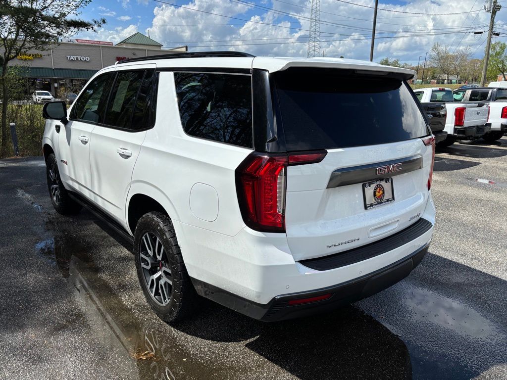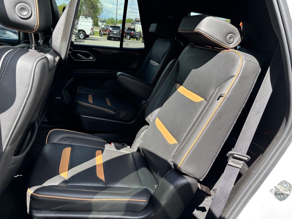 Summit White 2021 GMC Yukon AT4 EcoTec3 5.3L V8 10-Speed Automatic with Overdrive 4D Sport Utility AT4 Premium Plus Package (Dual-Pane Panoramic Power Sunroof and Power-Retractable Assist Steps), License Plate Front Mounting Package, Max Trailering Package (Extra Capacity Cooling System), Preferred Equipment Group 4SB (12-Way Power Seat Adjusters, 2 Presets For Outside Rearview Mirrors, 3rd Row 60/40 Power-Folding Split-Bench Seat, Black Roof-Mounted Luggage Rack Side Rails, Bose 9-Speaker Stereo Audio System Feature, Bright Front & Rear Door Sill Plates, Front High-Approach Angle Fascia, Hands-Free Power Programmable Rear Liftgate, Heated & Ventilated Driver & Front Passenger Seats, Heated 2nd Row Outboard Position Seats, Heated Automatic Steering Wheel, Heated Driver & Front Passenger Seats, Heavy-Duty Air Filter, Hill Descent Control, Inside Rear-View Auto-Dimming Mirror, Outside Heated Power-Adjustable Mirrors, Power Release 2nd Row 60/40 Split-Folding Bench Seat, Power Tilt & Telescopic Steering Column, Red Horizontal-Mounted Recovery Hooks, Safety Alert Seat, and Universal Home Remote), Premium Capability Package w/Active Response 4WD (Air Ride Adaptive Suspension and Electronic Limited Slip Differential (eLSD)), Rear Media & Nav Package (HD Radio, Radio: AM/FM/SiriusXM w/Navigation, Rear Seat Media System, and SiriusXM w/360L), Technology Package (15" Diagonal Multi-Color Head-Up Display, HD Surround Vision, and Rear Pedestrian Alert), 3.23 Rear Axle Ratio, 3rd row seats: split-bench, 4-Wheel Disc Brakes, 9 Speakers, ABS brakes, Adaptive suspension, Air Conditioning, All-Weather Floor Mats, Alloy wheels, AM/FM radio: SiriusXM with 360L, Apple CarPlay/Android Auto, Auto High-beam Headlights, Auto-dimming door mirrors, Auto-dimming Rear-View mirror, Auto-leveling suspension, Automatic Emergency Braking, Automatic temperature control, Brake assist, Bumpers: body-color, Compass, Delay-off headlights, Driver door bin, Driver vanity mirror, Dual front impact airbags, Dual front side impact airbags, Electronic Stability Control, Emergency communication system: OnStar and GMC connected services capable, Following Distance Indicator, Forward Collision Alert, Four wheel independent suspension, Front & Rear Park Assist, Front anti-roll bar, Front Bucket Seats, Front Center Armrest, Front dual zone A/C, Front fog lights, Front Pedestrian Braking, Front reading lights, Fully automatic headlights, Garage door transmitter, Heated door mirrors, Heated front seats, Heated rear seats, Heated steering wheel, Hitch Guidance w/Hitch View, Illuminated entry, In-Vehicle Trailering App, Integrated Trailer Brake Controller, IntelliBeam Automatic High Beam On/Off, Lane Change Alert w/Side Blind Zone Alert, Lane Keep Assist w/Lane Departure Warning, Leather steering wheel, Low tire pressure warning, Magnetic Ride Control Suspension, Memory seat, Occupant sensing airbag, Outside temperature display, Overhead airbag, Overhead console, Panic alarm, Passenger door bin, Passenger vanity mirror, Perforated Leather Seating Surfaces, Power door mirrors, Power driver seat, Power Liftgate, Power passenger seat, Power Release 2nd Row Bucket Seats, Power steering, Power windows, Radio: AM/FM/SiriusXM, Rain sensing wipers, Rear air conditioning, Rear anti-roll bar, Rear Cross Traffic Alert, Rear reading lights, Rear seat center armrest, Rear window defroster, Rear window wiper, Remote keyless entry, Roof rack: rails only, Security system, Speed control, Speed-sensing steering, Split folding rear seat, Spoiler, Steering wheel memory, Steering wheel mounted audio controls, Tachometer, Telescoping steering wheel, Tilt steering wheel, Traction control, Trailer Side Blind Zone Alert, Trip computer, Turn signal indicator mirrors, Variably intermittent wipers, Ventilated front seats, Voltmeter, and Wheels: 20" x 9" 6-Spoke Machined Aluminum.