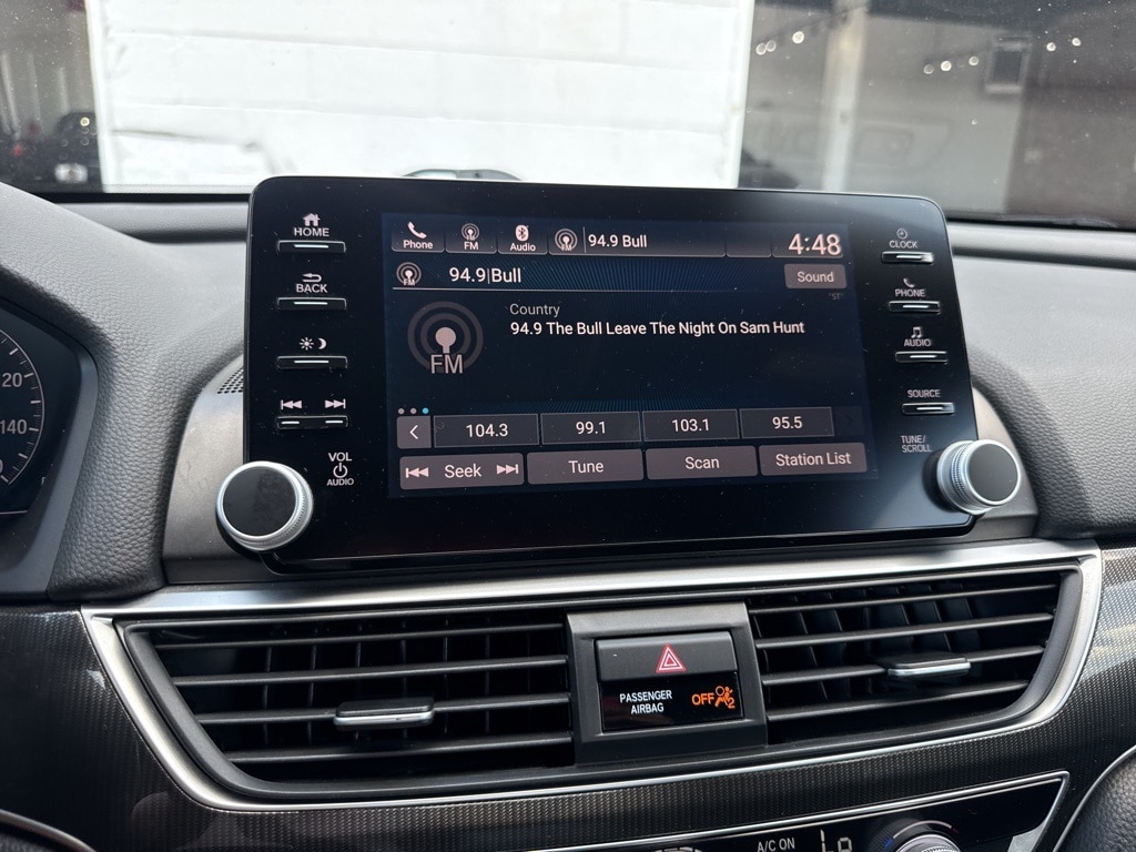 White 2018 Honda Accord Sport 1.5T I4 DOHC 16V Turbocharged VTEC CVT 4D Sedan 4-Wheel Disc Brakes, 8 Speakers, ABS brakes, Air Conditioning, Alloy wheels, AM/FM radio, Apple CarPlay/Android Auto, Auto High-beam Headlights, Automatic temperature control, Brake assist, Bumpers: body-color, Cloth Seat Trim, Delay-off headlights, Driver door bin, Driver vanity mirror, Dual front impact airbags, Dual front side impact airbags, Electronic Stability Control, Emergency communication system: HondaLink, Exterior Parking Camera Rear, Four wheel independent suspension, Front anti-roll bar, Front Bucket Seats, Front Center Armrest, Front dual zone A/C, Front fog lights, Front reading lights, Fully automatic headlights, Illuminated entry, Knee airbag, Leather Shift Knob, Leather steering wheel, Low tire pressure warning, Occupant sensing airbag, Outside temperature display, Overhead airbag, Overhead console, Panic alarm, Passenger door bin, Passenger vanity mirror, Power door mirrors, Power driver seat, Power steering, Power windows, Radio data system, Radio: 180-Watt AM/FM Audio System, Rear anti-roll bar, Rear seat center armrest, Rear window defroster, Remote keyless entry, Security system, Speed control, Speed-sensing steering, Speed-Sensitive Wipers, Split folding rear seat, Spoiler, Steering wheel mounted audio controls, Tachometer, Telescoping steering wheel, Tilt steering wheel, Traction control, Trip computer, Variably intermittent wipers, and Wheels: 19" Machine-Finished Alloy w/Black Inserts.