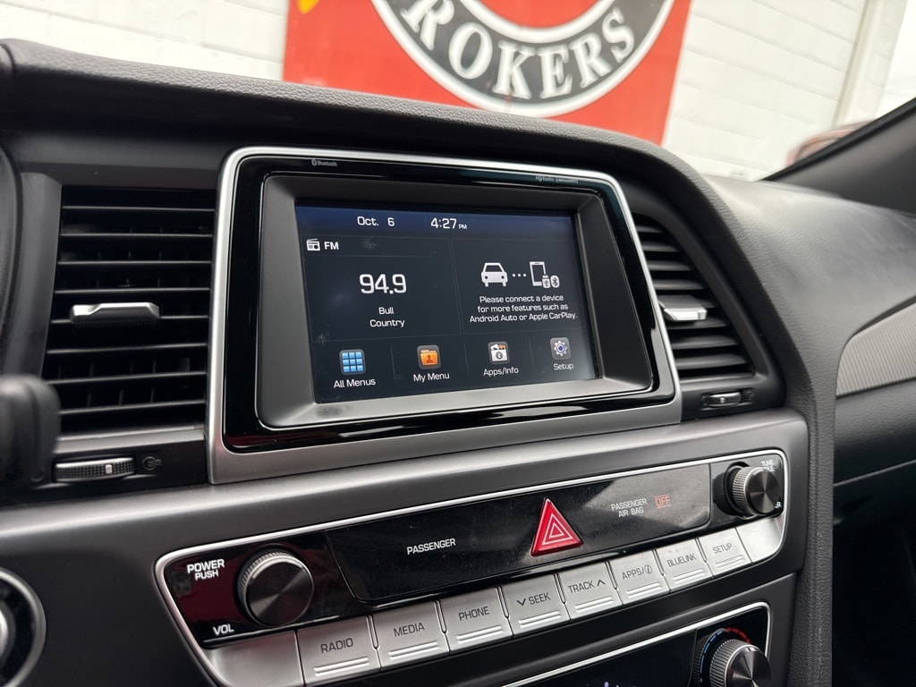 Machine Gray 2018 Hyundai Sonata Sport+ 2.4L I4 DGI DOHC 16V ULEV II 185hp 6-Speed Automatic with Shiftronic 4D Sedan Tech Package 05 (Option Group 05), 4-Wheel Disc Brakes, 6 Speakers, ABS brakes, Air Conditioning, Alloy wheels, AM/FM radio: SiriusXM, Apple CarPlay & Android Auto, Auto High-beam Headlights, Automatic temperature control, Brake assist, Bumpers: body-color, Carpeted Floor Mats, Delay-off headlights, Driver door bin, Driver vanity mirror, Dual front impact airbags, Dual front side impact airbags, Electronic Stability Control, Emergency communication system: Blue Link, Exterior Parking Camera Rear, Four wheel independent suspension, Front anti-roll bar, Front Bucket Seats, Front Center Armrest, Front dual zone A/C, Front reading lights, Fully automatic headlights, Heated door mirrors, Heated front seats, Heated Front Sport Seats, Heated steering wheel, Illuminated entry, Knee airbag, Leather Bolster/Cloth Insert Seating Surfaces, Leather Shift Knob, Leather steering wheel, Low tire pressure warning, Occupant sensing airbag, Outside temperature display, Overhead airbag, Overhead console, Panic alarm, Passenger door bin, Passenger vanity mirror, Power door mirrors, Power driver seat, Power moonroof, Power steering, Power windows, Radio data system, Radio: AM/FM/HD/SiriusXM/MP3 Display Audio, Rear anti-roll bar, Rear Bumper Applique, Rear seat center armrest, Rear window defroster, Remote keyless entry, Reversible Cargo Tray, Security system, Speed control, Speed-sensing steering, Speed-Sensitive Wipers, Split folding rear seat, Sport steering wheel, Steering wheel mounted audio controls, Tachometer, Telescoping steering wheel, Tilt steering wheel, Traction control, Trip computer, Turn signal indicator mirrors, Variably intermittent wipers, and Wheels: 17 x 7.0J Aluminum Alloy.
