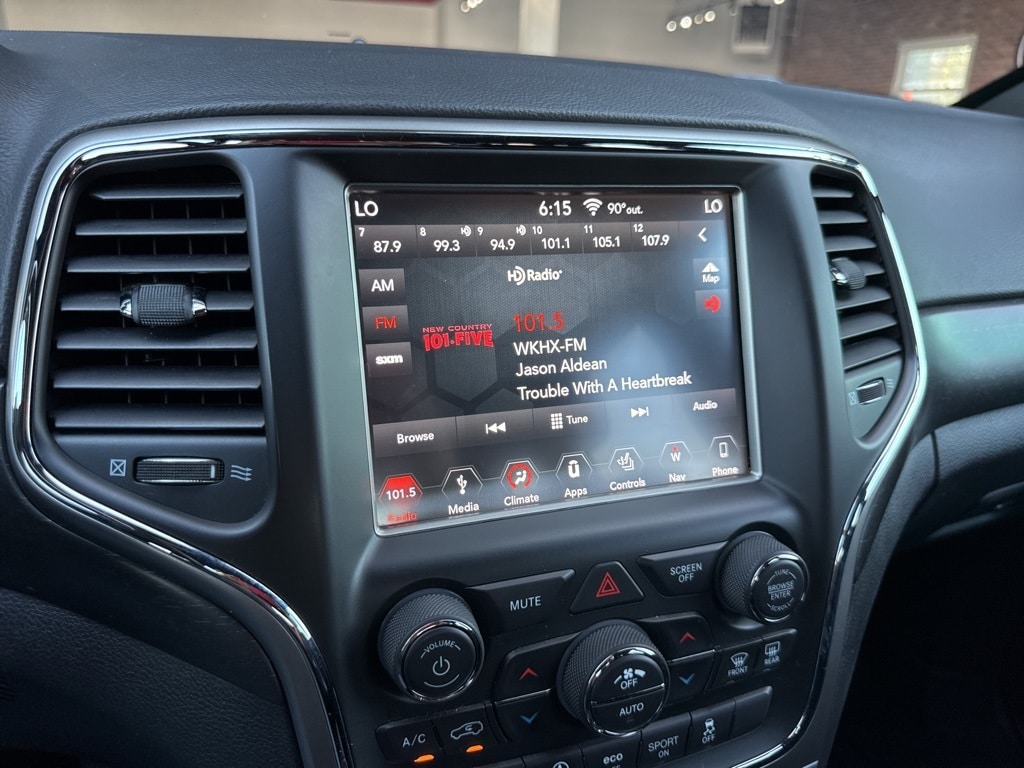 Diamond Black Crystal Pearlcoat 2018 Jeep Grand Cherokee Altitude 3.6L V6 24V VVT 8-Speed Automatic 4D Sport Utility Altitude IV Package, Quick Order Package 2BZ Altitude (1-Year SiriusXM Guardian Trial, 1-Year SiriusXM Radio Service, 5-Year SiriusXM Traffic Service, 5-Year SiriusXM Travel Link Service, 8.4" Touchscreen Display, Altitude Grille, Apple CarPlay, Auto-Dimming Rear-View Mirror, Black Suede Seats w/Black Stitching, Body Color Claddings, Body Color Fascia, Body Color Shark Fin Antenna, Dark Day Light Opening Moldings, Dark Headlamp Bezel Finish, Dark Lens Taillamps, Delete Laredo Badge, For Details Visit DriveUconnect.com, Front Accent/Body Color Fascia, Gloss Black Rear Fascia Applique, Google Android Auto, GPS Antenna Input, GPS Navigation, HD Radio, Integrated Voice Command w/Bluetooth, Jeep Black Gloss Badging, Power 4-Way Driver Lumbar Adjust, Power 8-Way Driver/Manual Passenger Seat, Radio: Uconnect 4C Nav w/8.4" Display, Rear Accent/Body Color Fascia, Rear Fascia Black MIC Step Pad, Single Exhaust w/Bright Tip, SiriusXM Satellite Radio, SiriusXM Traffic Plus, SiriusXM Travel Link, Steering Wheel Mounted Audio Controls, USB Host Flip, and Wheels: 20" x 8.0" Gloss Black Aluminum), Security & Convenience Group (115V Auxiliary Power Outlet, Power Liftgate, Security Alarm, and Universal Garage Door Opener), 3.45 Rear Axle Ratio, 4-Wheel Disc Brakes, 6 Speakers, 9 Amplified Speakers w/Subwoofer, ABS brakes, Air Conditioning, Alloy wheels, AM/FM radio, Anti-whiplash front head restraints, Apple CarPlay/Android Auto, Automatic temperature control, Brake assist, Bumpers: body-color, Cargo Compartment Cover, Cloth Bucket Seats, Compass, Delay-off headlights, Driver door bin, Driver vanity mirror, Dual front impact airbags, Dual front side impact airbags, Electronic Stability Control, Four wheel independent suspension, Front anti-roll bar, Front Bucket Seats, Front Center Armrest w/Storage, Front dual zone A/C, Front fog lights, Front reading lights, Fully automatic headlights, Heated door mirrors, Illuminated entry, Knee airbag, Leather Shift Knob, Low tire pressure warning, Normal Duty Suspension, Occupant sensing airbag, Outside temperature display, Overhead airbag, Overhead console, Panic alarm, ParkView Rear Back-Up Camera, Passenger door bin, Passenger vanity mirror, Power door mirrors, Power steering, Power Sunroof, Power windows, Radio data system, Radio: Uconnect 4 w/7" Display, Rear anti-roll bar, Rear reading lights, Rear seat center armrest, Rear window defroster, Rear window wiper, Remote keyless entry, Speed control, Speed-Sensitive Wipers, Split folding rear seat, Spoiler, Steering wheel mounted audio controls, Tachometer, Telescoping steering wheel, Tilt steering wheel, Traction control, Trip computer, Variably intermittent wipers, and Wheels: 17" x 8.0" Silver AluminuM.