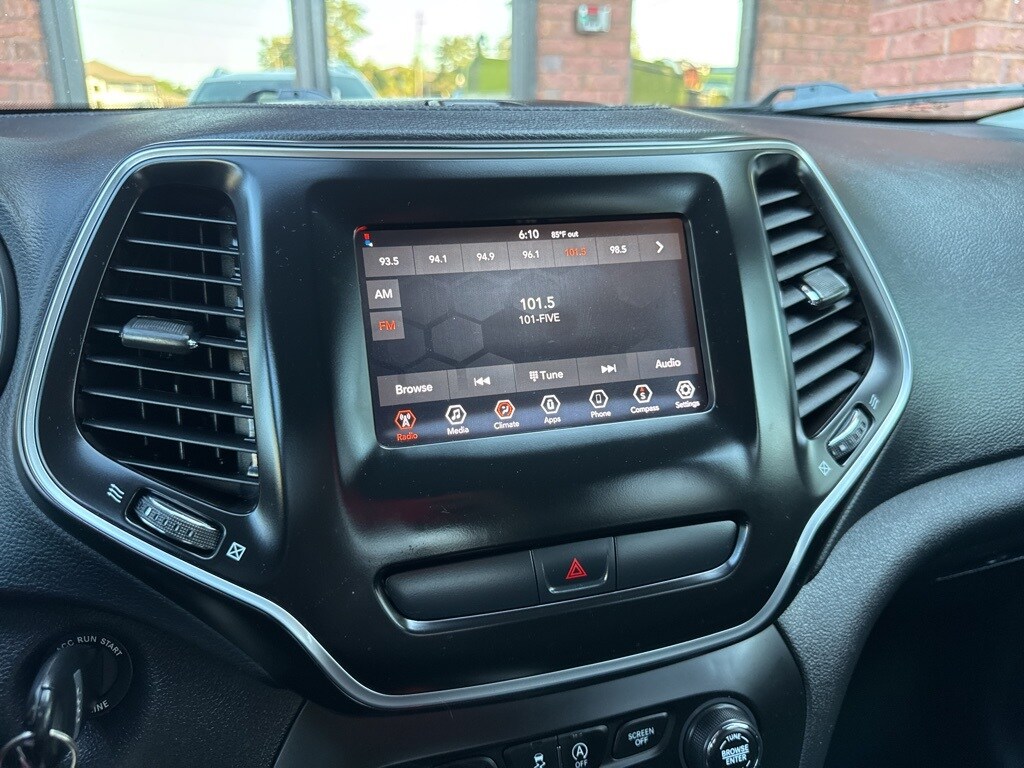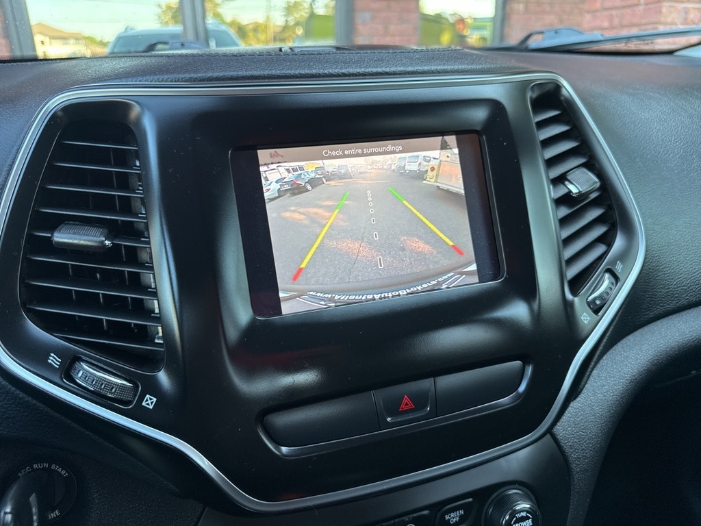 Bright White Clearcoat 2019 Jeep Cherokee Latitude 2.4L I4 9-Speed 948TE Automatic 4D Sport Utility Popular Appearance Group (17" x 7" Painted Aluminum Wheels and Deep Tint Sunscreen Glass), Quick Order Package 2BJ, 3.734 Axle Ratio, 4-Wheel Disc Brakes, 6 Speakers, ABS brakes, Air Conditioning, AM/FM radio, Anti-whiplash front head restraints, Apple CarPlay/Android Auto, Brake assist, Bumpers: body-color, Cloth Bucket Seats, Compass, Delay-off headlights, Driver door bin, Driver vanity mirror, Dual front impact airbags, Dual front side impact airbags, Electronic Stability Control, Four wheel independent suspension, Front anti-roll bar, Front Bucket Seats, Front Center Armrest, Front fog lights, Front reading lights, Fully automatic headlights, Heated door mirrors, Illuminated entry, Knee airbag, Low tire pressure warning, Normal Duty Suspension, Occupant sensing airbag, Outside temperature display, Overhead airbag, Overhead console, Panic alarm, ParkView Rear Back-Up Camera, Passenger door bin, Passenger vanity mirror, Power door mirrors, Power steering, Power windows, Radio data system, Radio: Uconnect 4 w/7" Display, Rear anti-roll bar, Rear reading lights, Rear seat center armrest, Rear side impact airbag, Rear window defroster, Rear window wiper, Remote keyless entry, Roof rack: rails only, Speed control, Speed-sensing steering, Split folding rear seat, Spoiler, Stop-Start Multiple VSM System, Tachometer, Telescoping steering wheel, Tilt steering wheel, Traction control, Trip computer, Variably intermittent wipers, and Voltmeter.