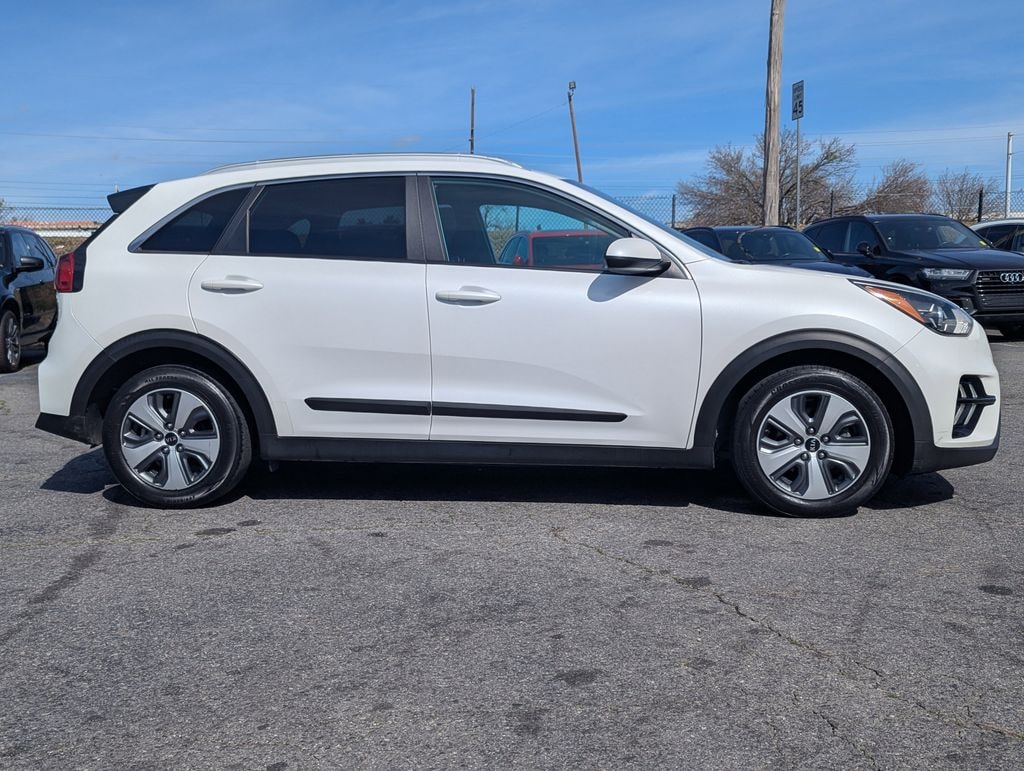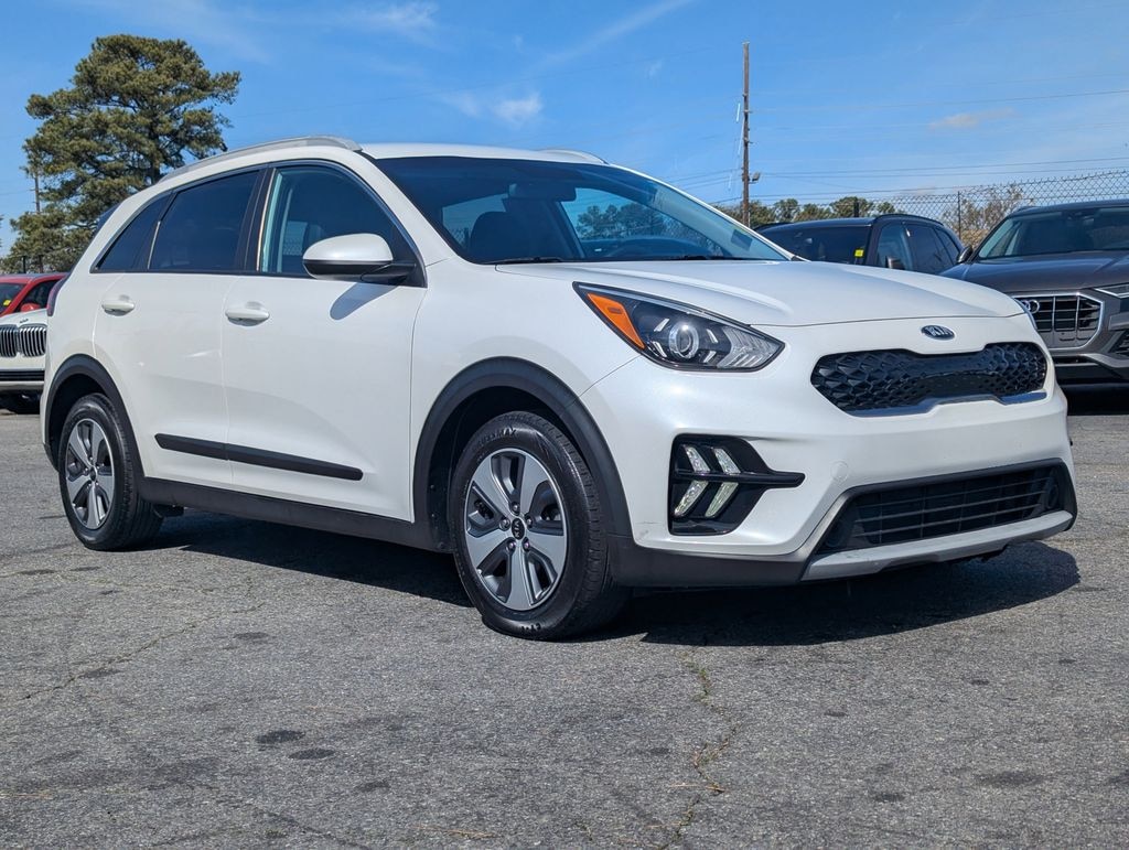 Snow White Pearl 2021 Kia Niro LX 1.6L I4 DGI Hybrid DOHC 16V LEV3-SULEV30 6-Speed Dual Clutch 4D Sport Utility 3.227 Axle Ratio, 4-Wheel Disc Brakes, 6 Speakers, ABS brakes, Air Conditioning, Alloy wheels, AM/FM radio, Automatic temperature control, Bodyside moldings, Brake assist, Bumpers: body-color, Carpeted Floor Mats, Cloth-Trimmed Seats, Delay-off headlights, Driver door bin, Driver vanity mirror, Dual front impact airbags, Dual front side impact airbags, Electronic Stability Control, Exterior Parking Camera Rear, Four wheel independent suspension, Front anti-roll bar, Front Bucket Seats, Front Center Armrest, Front dual zone A/C, Front reading lights, Fully automatic headlights, Illuminated entry, Knee airbag, Low tire pressure warning, Occupant sensing airbag, Outside temperature display, Overhead airbag, Overhead console, Panic alarm, Passenger door bin, Passenger vanity mirror, Power door mirrors, Power steering, Power windows, Radio: AM/FM/HD, Rear anti-roll bar, Rear window defroster, Rear window wiper, Remote keyless entry, Roof rack: rails only, Security system, Speed control, Speed-sensing steering, Split folding rear seat, Spoiler, Steering wheel mounted audio controls, Telescoping steering wheel, Tilt steering wheel, Traction control, Trip computer, Variably intermittent wipers, and Wheels: 16" Alloy w/Full Cover.