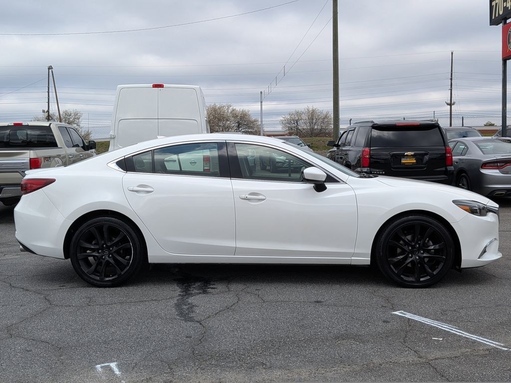 Snowflake White Pearl Mica 2016 Mazda Mazda6 i Grand Touring 2.5L 4-Cylinder DOHC 6-Speed Automatic 4D Sedan GT Technology Package (Active Grille Shutters, High Beam Control (HBC), i-ELOOP Regenerative Braking System, Lane Departure Warning System (LDWS), Mazda Radar Cruise Control (MRCC), and Smart Brake Support (SBS)), 11 Speakers, 3 Level Heated Reclining Front Sport Bucket Seats, 4-Wheel Disc Brakes, ABS brakes, Air Conditioning, Alloy wheels, AM/FM radio: SiriusXM, Anti-whiplash front head restraints, Auto-dimming door mirrors, Auto-dimming Rear-View mirror, Automatic temperature control, Brake assist, Bumpers: body-color, CD player, Compass, Delay-off headlights, Driver door bin, Driver vanity mirror, Dual front impact airbags, Dual front side impact airbags, Electronic Stability Control, Exterior Parking Camera Rear, Four wheel independent suspension, Front anti-roll bar, Front Bucket Seats, Front Center Armrest, Front dual zone A/C, Front fog lights, Front reading lights, Fully automatic headlights, Garage door transmitter: HomeLink, Heads-Up Display, Heated door mirrors, Heated front seats, Illuminated entry, Leather Seat Trim, Leather Shift Knob, Low tire pressure warning, Memory seat, Navigation System, Occupant sensing airbag, Outside temperature display, Overhead airbag, Overhead console, Panic alarm, Passenger door bin, Passenger vanity mirror, Power door mirrors, Power driver seat, Power moonroof, Power passenger seat, Power steering, Power windows, Radio data system, Radio: AM/FM/CD/MP3/AUX BOSE 11-Speaker & HD Radio, Rain sensing wipers, Rear anti-roll bar, Rear reading lights, Rear seat center armrest, Rear window defroster, Remote keyless entry, Security system, Snowflake White Pearl Mica Paint Charge, Speed control, Speed-sensing steering, Split folding rear seat, Spoiler, Steering wheel mounted audio controls, Tachometer, Telescoping steering wheel, Tilt steering wheel, Traction control, Trip computer, Turn signal indicator mirrors, Variably intermittent wipers, and Wheels: 19" Alloy w/Dark Silver Finish.