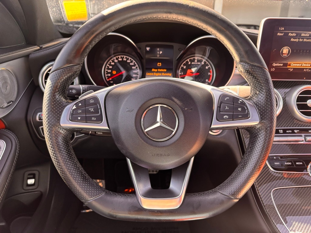 White 2017 Mercedes-Benz C-Class C 43 AMG® 3.0L V6 BiTurbo 9-Speed Automatic 4D Sedan 4-Way Lumbar Support, 4-Wheel Disc Brakes, 5 Speakers, ABS brakes, Adaptive suspension, Air Conditioning, Alloy wheels, AM/FM radio: SiriusXM, Auto tilt-away steering wheel, Auto-dimming door mirrors, Auto-dimming Rear-View mirror, Automatic temperature control, Brake assist, Bumpers: body-color, CD player, Compass, Delay-off headlights, Driver door bin, Driver vanity mirror, Dual front impact airbags, Dual front side impact airbags, DVD-Audio, Electronic Stability Control, Emergency communication system: mbrace, Exterior Parking Camera Rear, Four wheel independent suspension, Front anti-roll bar, Front Bucket Seats, Front Center Armrest, Front dual zone A/C, Front reading lights, Fully automatic headlights, Garage door transmitter: Homelink, Genuine wood console insert, Head restraints memory, Heated door mirrors, Heated Front Seats, Heated front seats, Illuminated entry, Knee airbag, Low tire pressure warning, MB-Tex/DINAMICA Upholstery, Memory seat, Occupant sensing airbag, Outside temperature display, Overhead airbag, Overhead console, Panic alarm, Passenger door bin, Passenger vanity mirror, Power adjustable front head restraints, Power door mirrors, Power driver seat, Power Driver Seat & Steering Column w/Memory, Power passenger seat, Power Passenger Seat w/Memory, Power steering, Power windows, Premium audio system: COMAND®, Radio data system, Radio: Audio 20 - Radio w/Single CD & Bluetooth, Rain sensing wipers, Rear anti-roll bar, Rear fog lights, Rear reading lights, Rear seat center armrest, Rear side impact airbag, Rear window defroster, Remote keyless entry, Security system, Single DVD/CD Player, SIRIUS Satellite Radio, Speed control, Speed-sensing steering, Split folding rear seat, Spoiler, Sport steering wheel, Steering wheel memory, Steering wheel mounted audio controls, Tachometer, Telescoping steering wheel, Tilt steering wheel, Traction control, Trip computer, Turn signal indicator mirrors, Variably intermittent wipers, Weather band radio, and Wheels: 18" AMG® 5-Spoke w/Black Accents.