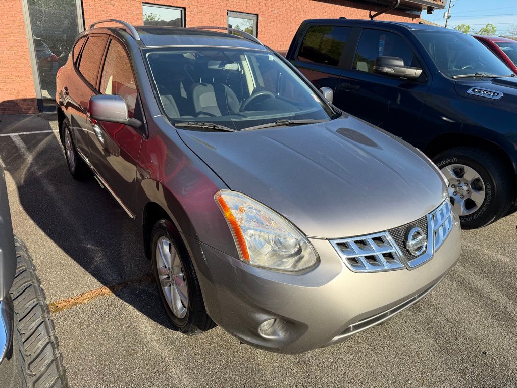 Platinum Graphite Metallic 2012 Nissan Rogue SV 2.5L I4 DOHC 16V CVT 4D Sport Utility Premium Package (Automatic Temperature Control (ATC), Navigation System w/5" Color Touch Screen Display, and Power Sliding Glass Moonroof), 17" Aluminum Alloy Wheels, 4-Wheel Disc Brakes, 5.798 Axle Ratio, 6 Speakers, ABS brakes, Air Conditioning, Alloy wheels, AM/FM radio: SiriusXM, AM/FM/CD Audio System, Anti-whiplash front head restraints, Bodyside moldings, Brake assist, Bumpers: body-color, CD player, Driver door bin, Driver vanity mirror, Dual front impact airbags, Dual front side impact airbags, Electronic Stability Control, Exterior Parking Camera Rear, Floor Mats & Cargo Area Protector, Fog Lights, Four wheel independent suspension, Front anti-roll bar, Front Bucket Seats, Front Center Armrest, Front reading lights, Illuminated entry, Illuminated Kick Plates, Low tire pressure warning, Occupant sensing airbag, Outside temperature display, Overhead airbag, Overhead console, Panic alarm, Passenger door bin, Passenger vanity mirror, Power door mirrors, Power driver seat, Power steering, Power windows, Radio data system, Rear anti-roll bar, Rear window defroster, Rear window wiper, Remote keyless entry, Roof rack: rails only, Security system, Speed control, Speed-sensing steering, Splash Guards, Split folding rear seat, Spoiler, Steering wheel mounted audio controls, Tachometer, Tilt steering wheel, Traction control, Trip computer, Upgraded Cloth Seat Trim, and Variably intermittent wipers.