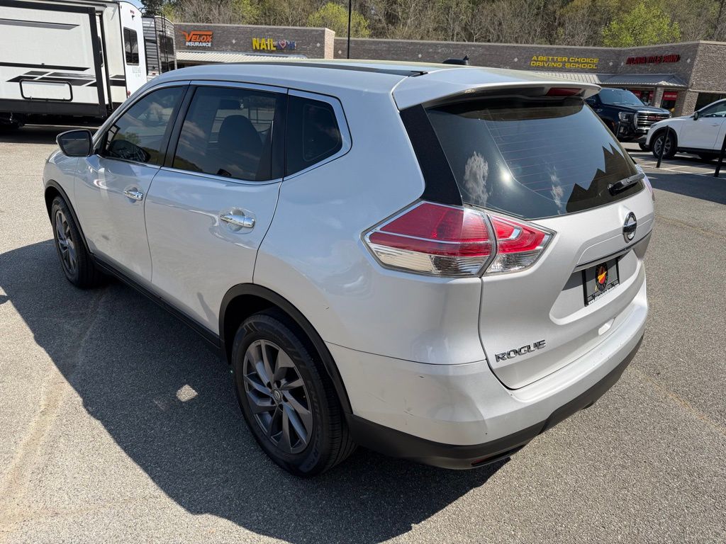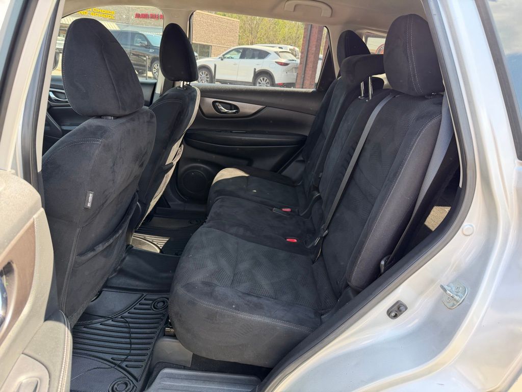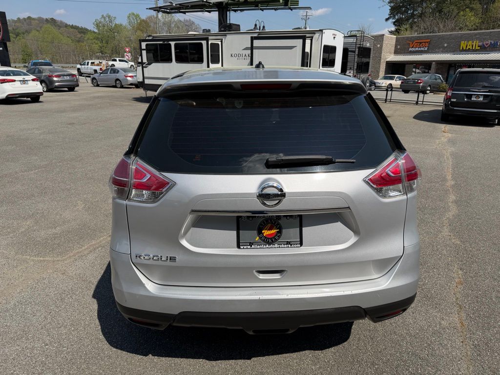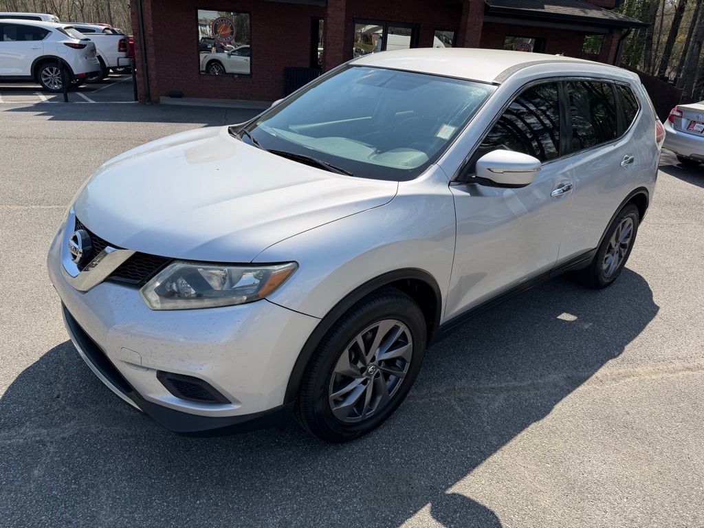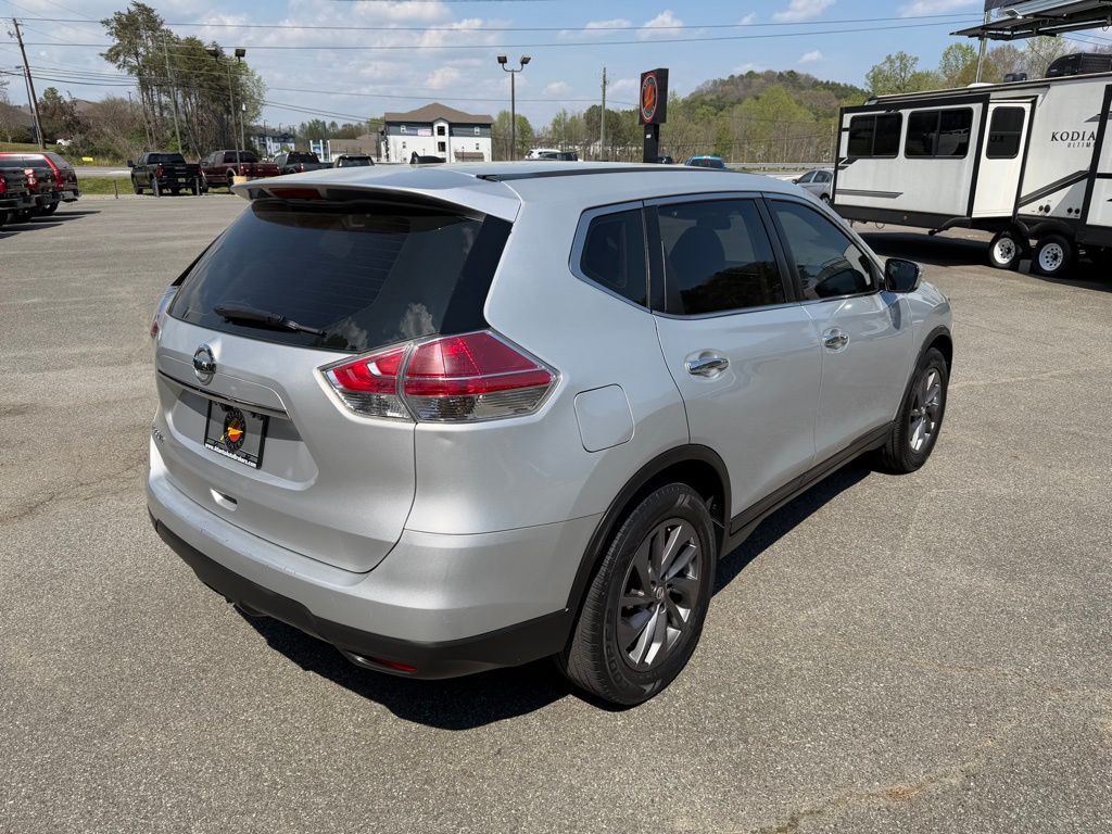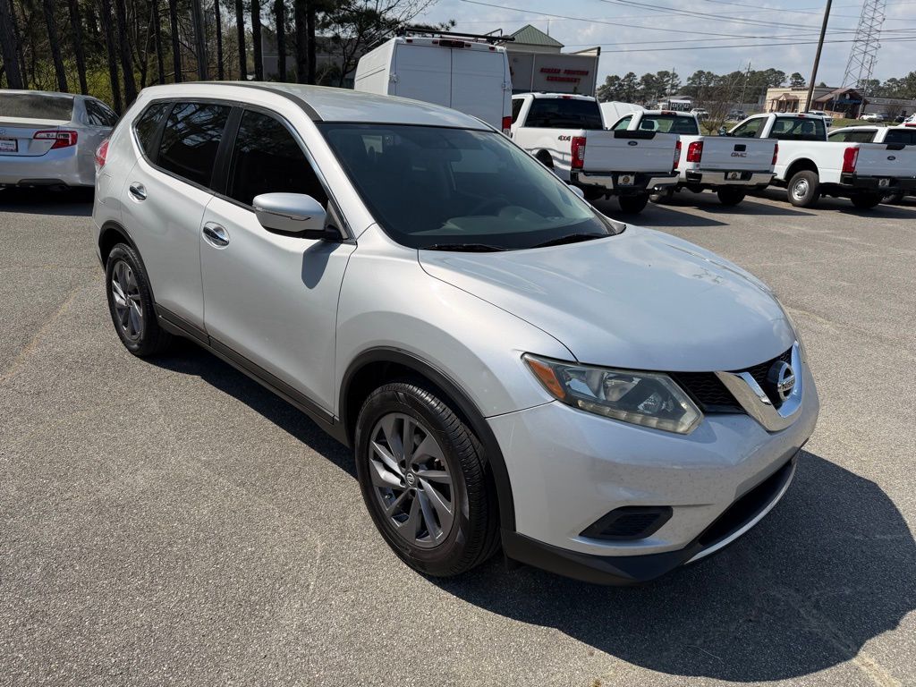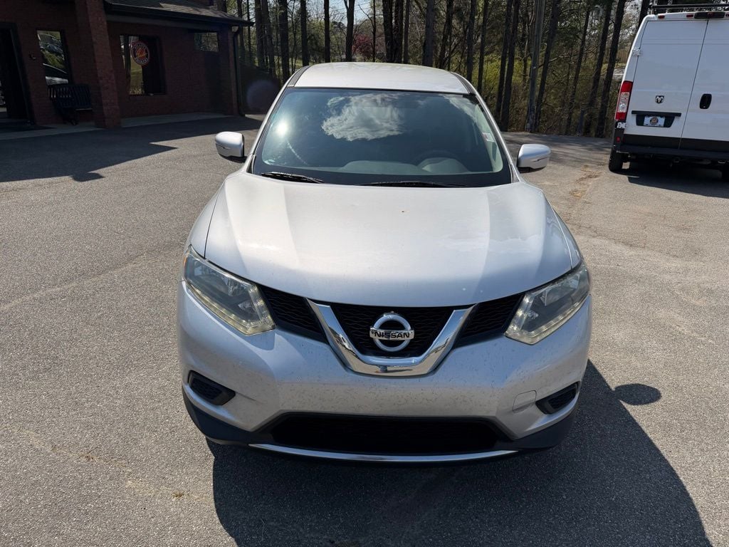 Brilliant Silver 2015 Nissan Rogue S 2.5L I4 DOHC 16V CVT with Xtronic 4D Sport Utility 4 Speakers, 4-Wheel Disc Brakes, 5.694 Axle Ratio, ABS brakes, Air Conditioning, AM/FM radio, Anti-whiplash front head restraints, Brake assist, Bumpers: body-color, CD player, Cloth Seat Trim, Driver door bin, Driver vanity mirror, Dual front impact airbags, Dual front side impact airbags, Electronic Stability Control, Exterior Parking Camera Rear, Floor Mats & 2-PC Cargo Area Protector, Four wheel independent suspension, Front anti-roll bar, Front Bucket Seats, Front Center Armrest w/Storage, Front reading lights, Illuminated entry, Low tire pressure warning, Occupant sensing airbag, Outside temperature display, Overhead airbag, Overhead console, Panic alarm, Passenger door bin, Passenger vanity mirror, Power door mirrors, Power steering, Power windows, Radio data system, Radio: AM/FM/CD/RDS/AUX NissanConnect, Rear anti-roll bar, Rear window defroster, Rear window wiper, Remote keyless entry, Security system, Speed control, Speed-sensing steering, Split folding rear seat, Spoiler, Steering wheel mounted audio controls, Tachometer, Telescoping steering wheel, Tilt steering wheel, Traction control, Trip computer, Turn signal indicator mirrors, Variably intermittent wipers, and Wheels: 17" Steel w/Full Covers.