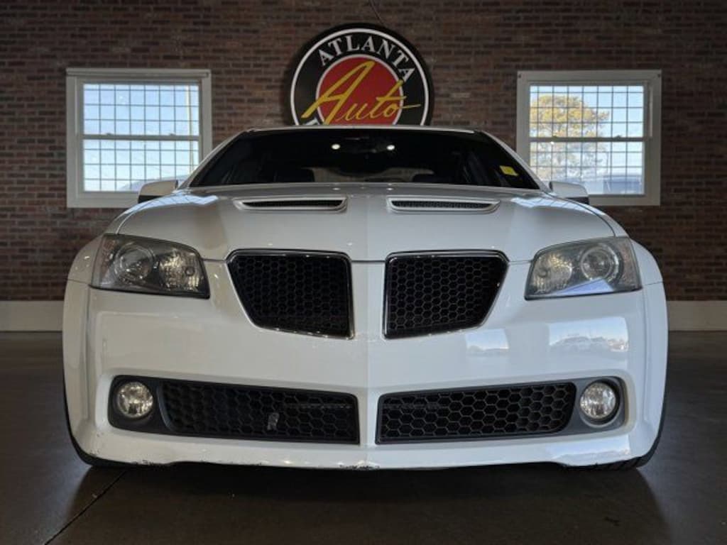 Polar White 2009 Pontiac G8 GT Vortec 6.0L V8 SFI 6-Speed Automatic with Driver Shift Control 4D Sedan Premium Package (6-Way Power Driver Seat Adjuster, 6-Way Power Front Passenger Seat Adjuster, Front Seatback Map Pocket w/Netting, Heated Driver & Front Passenger Seats, Leather-Wrapped Shift Lever, and Rear Center Armrest), Sport Package (19" Machined-Faced 5-Spoke Aluminum Wheels, Leather-Wrapped Sport Steering Wheel, and Sport Metallic Pedals), 11 Speakers, 18" Machined-Face Aluminum Wheels, 4-Wheel Disc Brakes, ABS brakes, Air Conditioning, Alloy wheels, AM/FM radio: XM, AM/FM Stereo w/6-Disc CD/XM Satellite, Anti-whiplash front head restraints, Automatic temperature control, Brake assist, Bumpers: body-color, CD player, Compass, Delay-off headlights, Driver door bin, Driver vanity mirror, Dual front impact airbags, Dual front side impact airbags, Electronic Stability Control, Emergency communication system: OnStar Safe & Sound, Four wheel independent suspension, Front anti-roll bar, Front Bucket Seats, Front Center Armrest, Front dual zone A/C, Front fog lights, Front Sport Bucket Seats, Fully automatic headlights, Illuminated entry, Low tire pressure warning, Occupant sensing airbag, Outside temperature display, Overhead airbag, Overhead console, Panic alarm, Passenger door bin, Passenger vanity mirror, Power door mirrors, Power driver seat, Power passenger seat, Power steering, Power windows, Premium Cloth Seat Trim, Rear anti-roll bar, Rear seat center armrest, Rear window defroster, Remote keyless entry, Security system, Speed control, Speed-sensing steering, Speed-Sensitive Wipers, Spoiler, Steering wheel mounted audio controls, Tachometer, Telescoping steering wheel, Tilt steering wheel, Traction control, Trip computer, Variably intermittent wipers, Voltmeter, and XM Radio.