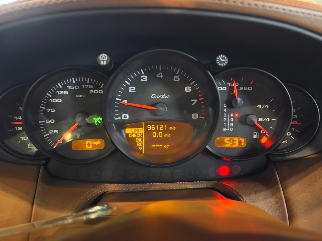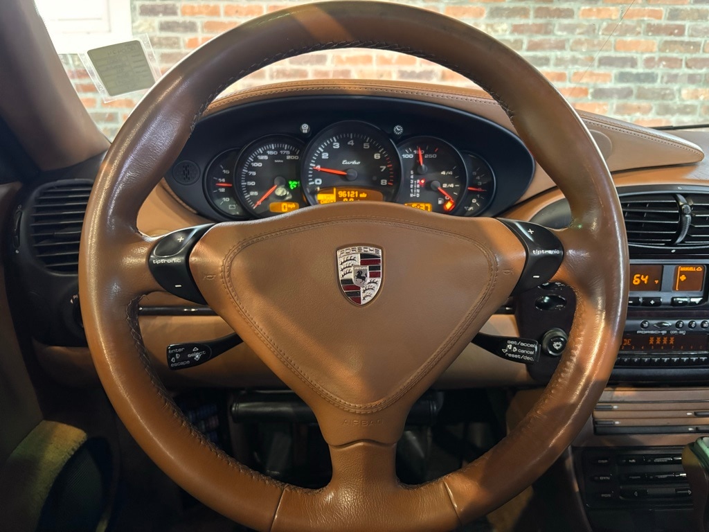 Midnight Blue Metallic 2001 Porsche 911 Turbo 3.6L H6 SMPI DOHC 5 Speed Automatic with Tiptronic S 2D Coupe 10 Speakers, 4-Wheel Disc Brakes, ABS brakes, Air Conditioning, Alloy wheels, AM/FM radio, Automatic temperature control, Bumpers: body-color, Cassette, Driver door bin, Driver vanity mirror, Dual front impact airbags, Dual front side impact airbags, Electronic Stability Control, Four wheel independent suspension, Front anti-roll bar, Front Bucket Seats, Front Center Armrest, Front fog lights, Headlight cleaning, Heated door mirrors, High intensity discharge headlights: Bi-Xenon, Illuminated entry, Leather Shift Knob, Leather steering wheel, Memory seat, Outside temperature display, Overhead console, Panic alarm, Passenger door bin, Passenger vanity mirror, Power door mirrors, Power driver seat, Power moonroof, Power passenger seat, Power steering, Power windows, Rear anti-roll bar, Rear fog lights, Rear window defroster, Remote keyless entry, Security system, Speed control, Speed-sensing steering, Split folding rear seat, Spoiler, Standard Leather Interior, Tachometer, Telescoping steering wheel, Traction control, Variably intermittent wipers, and Voltmeter.