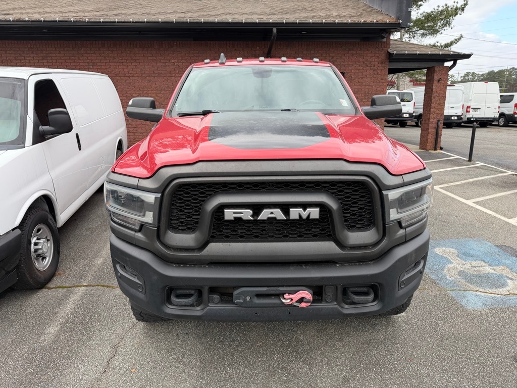 Flame Red Clearcoat 2019 Ram 2500 Power Wagon 6.4L Heavy Duty V8 HEMI w/MDS 8-Speed Automatic 4D Crew Cab Quick Order Package 2ZP Power Wagon, 115V Auxiliary Rear Power Outlet, 2 Way Rear Headrest Seat, 4 Way Front Headrests, 4-Wheel Disc Brakes, 4.10 Axle Ratio, 40/20/40 Split Bench Seat, 6 Speakers, ABS brakes, Air Conditioning, Alloy wheels, AM/FM radio: SiriusXM, Auto-dimming Rear-View mirror, Black Exterior Mirrors, Black Tubular Side Steps, Block heater, Brake assist, Cloth Power Bench Seat w/Emboss Tread Pattern, Compass, Delay-off headlights, Driver door bin, Dual front impact airbags, Dual front side impact airbags, Electronic Stability Control, Folding Flat Load Floor Storage, Front anti-roll bar, Front Center Armrest w/Storage, Front fog lights, Front reading lights, Fully automatic headlights, Heated door mirrors, Illuminated entry, Leather steering wheel, Low tire pressure warning, Occupant sensing airbag, Outside temperature display, Overhead airbag, Overhead console, Panic alarm, ParkView Rear Back-Up Camera, Passenger door bin, Passenger vanity mirror, Power 2-Way Driver Lumbar Adjust, Power door mirrors, Power driver seat, Power steering, Power windows, Radio data system, Radio: Uconnect 4 w/8.4" Display, Rain sensing wipers, Rear 60/40 Folding Seat, Rear anti-roll bar, Rear seat center armrest, Rear step bumper, Rear window defroster, Remote keyless entry, Selectable Tire Fill Alert, Speed control, Split folding rear seat, Steering wheel mounted audio controls, Tachometer, Tilt steering wheel, Traction control, Trip computer, Turn signal indicator mirrors, Variably intermittent wipers, Vendor Painted Cargo Box Tracking, Voltmeter, and Wheels: 17" x 8.0" Matte Black/Polished.