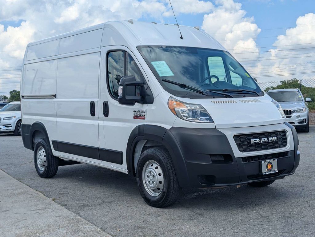 Bright White Clearcoat 2019 Ram ProMaster 1500 3.6L V6 24V VVT 6-Speed Automatic 3D Cargo Van Quick Order Package 21A, Side Wall Paneling Upper & Lower (Side Wall Paneling Lower), 3.86 Axle Ratio, 4 Speakers, 4-Wheel Disc Brakes, 5.0" Touchscreen Display, ABS brakes, Air Conditioning, AM/FM radio, Bodyside moldings, Brake assist, Center Wheel Cap, Cloth Bucket Seats, Driver door bin, Dual front impact airbags, Dual front side impact airbags, Electronic Stability Control, Front anti-roll bar, Front Bucket Seats, Front License Plate Bracket, Front reading lights, Front wheel independent suspension, Illuminated entry, Integrated Voice Command w/Bluetooth, Low tire pressure warning, Manufacturer's Statement of Origin, Media Hub (USB, AUX), Media Input Hub, Medium Duty Suspension, Outside temperature display, Overhead airbag, ParkView Rear Back-Up Camera, Passenger door bin, Power steering, Power windows, Radio: Uconnect 3 w/5" Display, Remote keyless entry, Steering Wheel Mounted Audio Controls, Steering wheel mounted audio controls, Tachometer, Telescoping steering wheel, Traction control, Trip computer, Turn signal indicator mirrors, Variably intermittent wipers, and Wheels: 16" x 6.0" Steel.