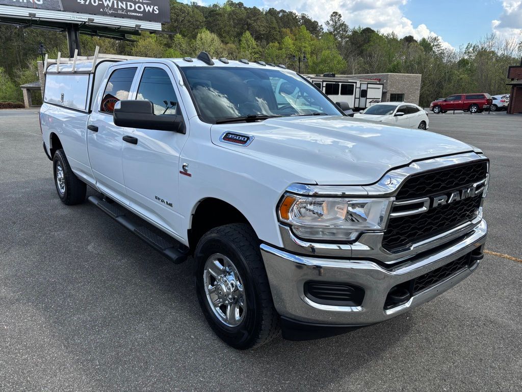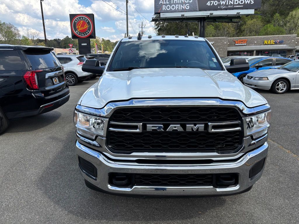 Bright White Clearcoat 2022 Ram 3500 Tradesman 6.7L I6 Aisin 6-Speed Automatic 4D Crew Cab Chrome Appearance Group (Bright Front Bumper, Bright Rear Bumper, Bright Wheel Skins, Center Hub, Chrome Grille Surround, and Matte Black Mesh w/Chrome Grille), Cold Weather Group (Engine Block Heater and MOPAR Winter Front Grille Cover), Quick Order Package 21A Tradesman, Snow Chief Group (220 Amp Alternator, Clearance Lamps, Dash Pass Thru Wire Circuits, and I/P Mounted Auxiliary Switches), 2 Way Rear Headrest Seat, 3.73 Axle Ratio, 4 Way Front Headrests, 4-Wheel Disc Brakes, 40/20/40 Split Bench Seat, 4G LTE Wi-Fi Hot Spot, 6 Speakers, 8.4" Touchscreen Display, ABS brakes, Active Noise Control System, Air Conditioning, All R1 Low Radios, All Radio Equipped Vehicles, AM/FM radio, Apple CarPlay, Black Exterior Mirrors, Bluetooth Handsfree Phone & Audio, Brake assist, Cluster 3.5" TFT Color Display, Compass, Connectivity - US/Canada, Delay-off headlights, Driver door bin, Dual front impact airbags, Dual front side impact airbags, Electronic Stability Control, Electronically Controlled Throttle, Emergency communication system: SiriusXM Guardian, For Details Visit DriveUconnect.com, Front anti-roll bar, Front Armrest w/Cupholders, Front Center Armrest w/Storage, Front License Plate Bracket, Front reading lights, Fully automatic headlights, Global Telematics Box Module (TBM), Google Android Auto, GPS Antenna Input, HD Vinyl 40/20/40 Split Bench Seat, Heated door mirrors, Illuminated entry, Integrated Center Stack Radio, Integrated Voice Command w/Bluetooth, Low tire pressure warning, Manual Adjust 4-Way Driver Seat, Manual Adjust 4-Way Front Passenger Seat, Manufacturer's Statement of Origin, MOPAR Front & Rear Rubber Floor Mats, Occupant sensing airbag, Outside temperature display, Overhead airbag, Overhead console, ParkView Rear Back-Up Camera, Passenger door bin, Passenger vanity mirror, Power door mirrors, Power steering, Power windows, Radio data system, Radio: Uconnect 3 w/5" Display, Radio: Uconnect 5 w/8.4" Display, Rear Folding Seat, Rear step bumper, Selectable Tire Fill Alert, SiriusXM Satellite Radio, Speed control, Storage Tray, Tachometer, Tilt steering wheel, Tip Start, Traction control, Trailer Brake Control, Trailer Light Check, Turn signal indicator mirrors, Variably intermittent wipers, Voltmeter, Wheels: 18" x 8.0" Steel, and Wheels: 18" x 8.0" Steel Chrome ClaD.