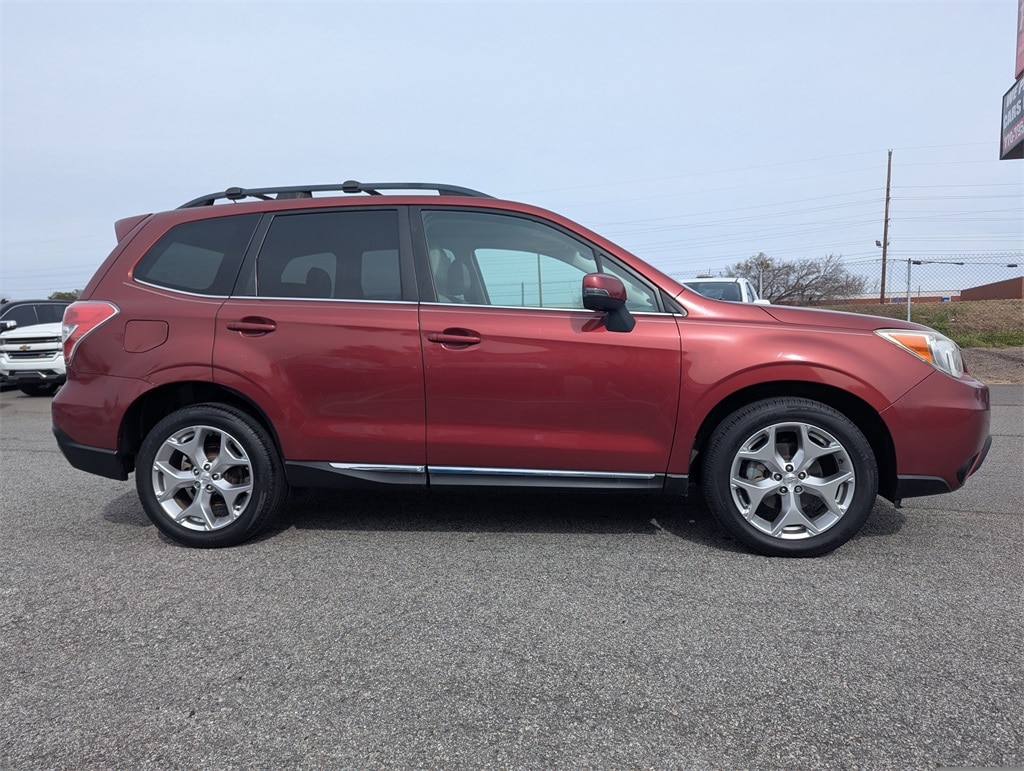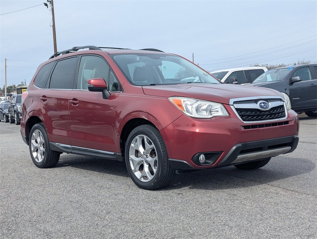 Venetian Red Pearl 2015 Subaru Forester 2.5i Touring 2.5L 4-Cylinder DOHC 16V VVT Lineartronic CVT 4D Sport Utility EyeSight & Navigation System (Aha Infotainment, EyeSight System, harman/kardon 440W Amp & Speaker System, Radio: HD AM/FM Stereo w/Single CD Player, and Touch-Screen GPS Navigation System), 18" Alloy Wheels, 3.70 Axle Ratio, 4-Wheel Disc Brakes, 8 Speakers, ABS brakes, Aero Cross Bar Set, Air Conditioning, Alloy wheels, AM/FM radio: SiriusXM, Automatic temperature control, Brake assist, Bumpers: body-color, CD player, Driver door bin, Driver vanity mirror, Dual front impact airbags, Dual front side impact airbags, Electronic Stability Control, Exterior Parking Camera Rear, Four wheel independent suspension, Front anti-roll bar, Front Bucket Seats, Front Bumper Underguard, Front Center Armrest, Front dual zone A/C, Front fog lights, Front reading lights, Fully automatic headlights, harman/kardon® Speakers, Heated door mirrors, Heated Front Bucket Seats, Heated front seats, High-Intensity Discharge Headlights, Illuminated entry, Knee airbag, Leather Shift Knob, Low tire pressure warning, Occupant sensing airbag, Outside temperature display, Overhead airbag, Overhead console, Panic alarm, Passenger door bin, Passenger vanity mirror, Perforated Leather-Trimmed Upholstery, Power door mirrors, Power driver seat, Power Liftgate, Power moonroof, Power steering, Power windows, Premium audio system: harman/kardon, Radio data system, Radio: AM/FM Stereo w/HD & Single CD Player, Rear anti-roll bar, Rear Bumper Cover, Rear Bumper Underguard, Rear seat center armrest, Rear window defroster, Rear window wiper, Remote keyless entry, Roof rack: rails only, Security system, Speed control, Split folding rear seat, Spoiler, Steering wheel mounted audio controls, Tachometer, Telescoping steering wheel, Tilt steering wheel, Traction control, Trip computer, Turn signal indicator mirrors, and Variably intermittent wipers.