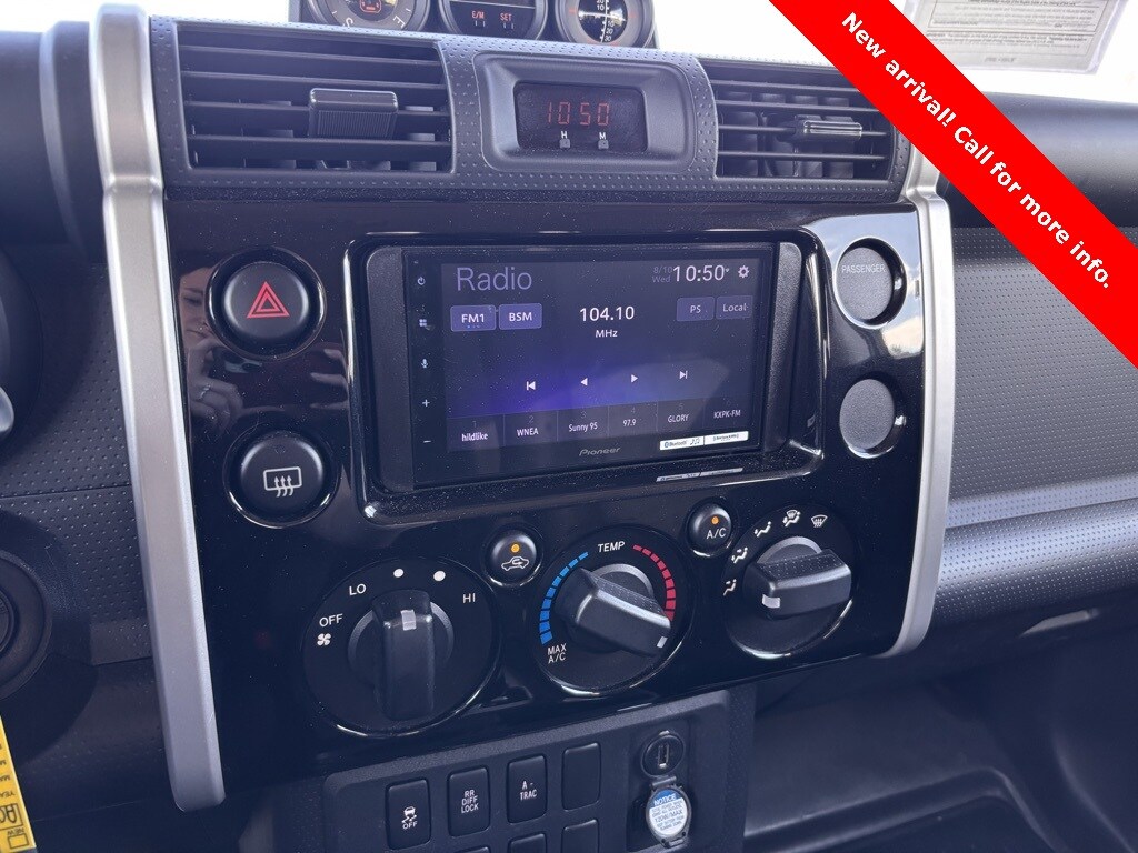 Black 2011 Toyota FJ Cruiser 4.0L V6 DOHC VVT-i 24V 5-Speed Automatic 4D Sport Utility 17" x 7.5" Steel Wheels, 3.73 Axle Ratio, 4-Wheel Disc Brakes, 6 Speakers, ABS brakes, Air Conditioning, AM/FM radio: XM, AM/FM/CD Audio System w/6-Speakers, Anti-whiplash front head restraints, Brake assist, CD player, Driver door bin, Driver vanity mirror, Driver's Seat Mounted Armrest, Dual front impact airbags, Dual front side impact airbags, Electronic Stability Control, Fabric Seat Trim, Front anti-roll bar, Front Bucket Seats, Front reading lights, Front wheel independent suspension, Illuminated entry, Locking Rear Differential, Low tire pressure warning, Occupant sensing airbag, Overhead airbag, Passenger door bin, Passenger vanity mirror, Power steering, Power windows, Rear anti-roll bar, Rear window defroster, Speed-sensing steering, Split folding rear seat, Steering wheel mounted audio controls, Tachometer, Tilt steering wheel, Traction control, Variably intermittent wipers, and Voltmeter.