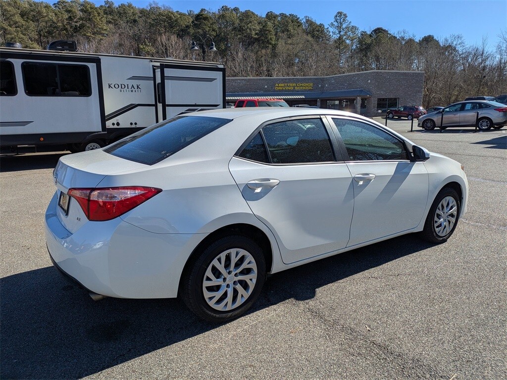 White 2018 Toyota Corolla LE 1.8L I4 DOHC CVT 4D Sedan 6 Speakers, ABS brakes, Air Conditioning, Auto High-beam Headlights, Brake assist, Bumpers: body-color, CD player, Delay-off headlights, Driver door bin, Driver vanity mirror, Dual front impact airbags, Dual front side impact airbags, Electronic Stability Control, Exterior Parking Camera Rear, Front anti-roll bar, Front Bucket Seats, Front Center Armrest w/Storage, Front reading lights, Front wheel independent suspension, Fully automatic headlights, Illuminated entry, Knee airbag, Low tire pressure warning, Occupant sensing airbag, Outside temperature display, Overhead airbag, Passenger door bin, Passenger vanity mirror, Power door mirrors, Power steering, Power windows, Radio data system, Rear anti-roll bar, Rear window defroster, Speed control, Speed-sensing steering, Split folding rear seat, Steering wheel mounted audio controls, Tachometer, Telescoping steering wheel, Tilt steering wheel, Traction control, and Trip computer.