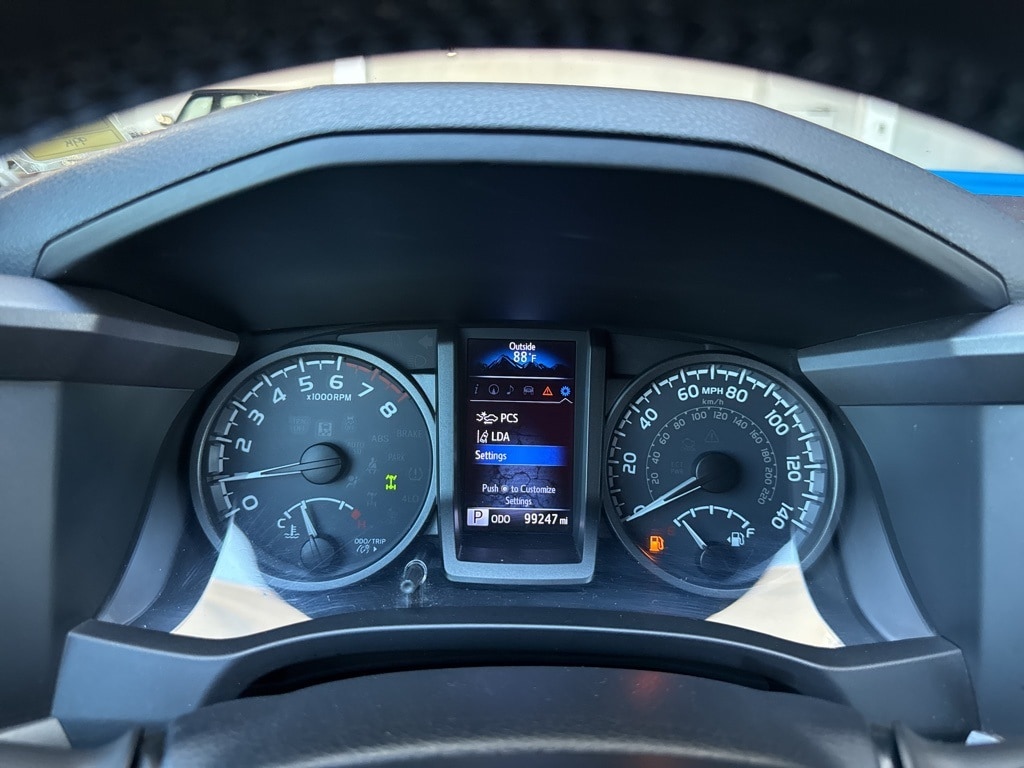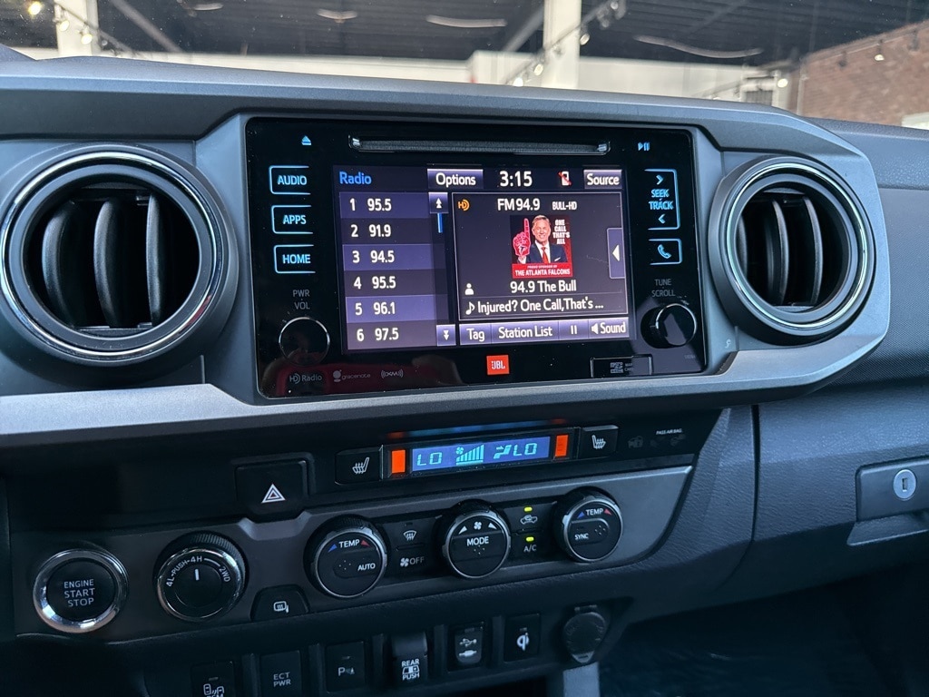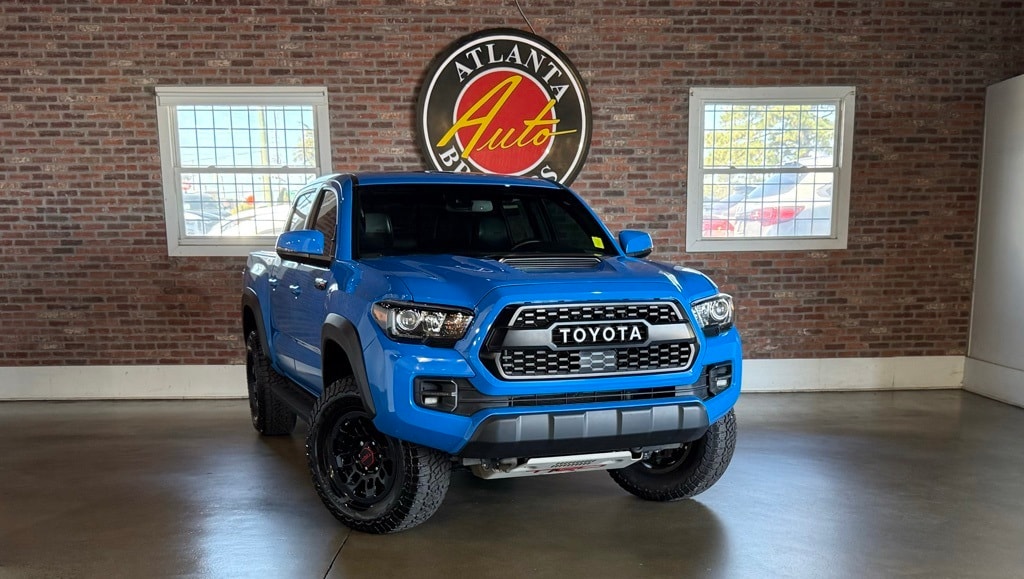 Blue 2019 Toyota Tacoma TRD Pro 3.5L V6 PDI DOHC 24V LEV3-ULEV70 278hp 6-Speed Automatic 4D Double Cab ABS brakes, Active Cruise Control, Alloy wheels, Dual Zone Automatic Climate Control, Electronic Stability Control, Front dual zone A/C, Heated front seats, Illuminated entry, Lane Change Assist, Low tire pressure warning, Navigation System, Power moonroof, Remote keyless entry, Traction control, 120V/400W Deck Mounted AC Power, 7 Speakers, Air Conditioning, AM/FM radio: SiriusXM, Anti-whiplash front head restraints, Auto High-beam Headlights, Auto-Dimming Inside Rear-View Mirror w/Compass, Auto-dimming Rear-View mirror, Automatic temperature control, Axle Ratio: 3.91, Black Overfenders, Blind Spot Monitor w/Rear Cross Traffic Alert, Brake assist, Bumpers: body-color, CD player, Driver door bin, Dual front impact airbags, Dual front side impact airbags, Engine Immobilizer, Entune App Suite, Exterior Parking Camera Rear, Front anti-roll bar, Front Bucket Seats, Front Center Armrest, Front fog lights, Front reading lights, Front wheel independent suspension, Fully automatic headlights, Garage door transmitter: HomeLink, Knee airbag, Leather Shift Knob, Occupant sensing airbag, Outside temperature display, Overhead airbag, Overhead console, Panic alarm, Passenger door bin, Power door mirrors, Power Sliding Rear Window w/Privacy Glass, Power steering, Power windows, Projector-Beam Headlights, Radio: Entune Premium JBL AM/FM/CD w/Nav & App Ste, Rear Parking Assist Sonar, Rear Parking Sensors, Rear step bumper, Remote Keyless Entry System, Rigid Industries LED fog lights, Security system, Speed control, Speed-sensing steering, Split folding rear seat, Steering wheel mounted audio controls, Tachometer, Telescoping steering wheel, Tilt steering wheel, TRD Pro Leather Trim, TRD-Tuned Off-Road Suspension (TR), Trip computer, Turn signal indicator mirrors, Variable Intermittent Wipers, Variably intermittent wipers, and Wheels: 16" x 7" TRD Pro Black Alloy. ABS brakes, Active Cruise Control, Alloy wheels, Dual Zone Automatic Climate Control, Electronic Stability Control, Front dual zone A/C, Heated front seats, Illuminated entry, Lane Change Assist, Low tire pressure warning, Navigation System, Power moonroof, Remote keyless entry, Traction control.