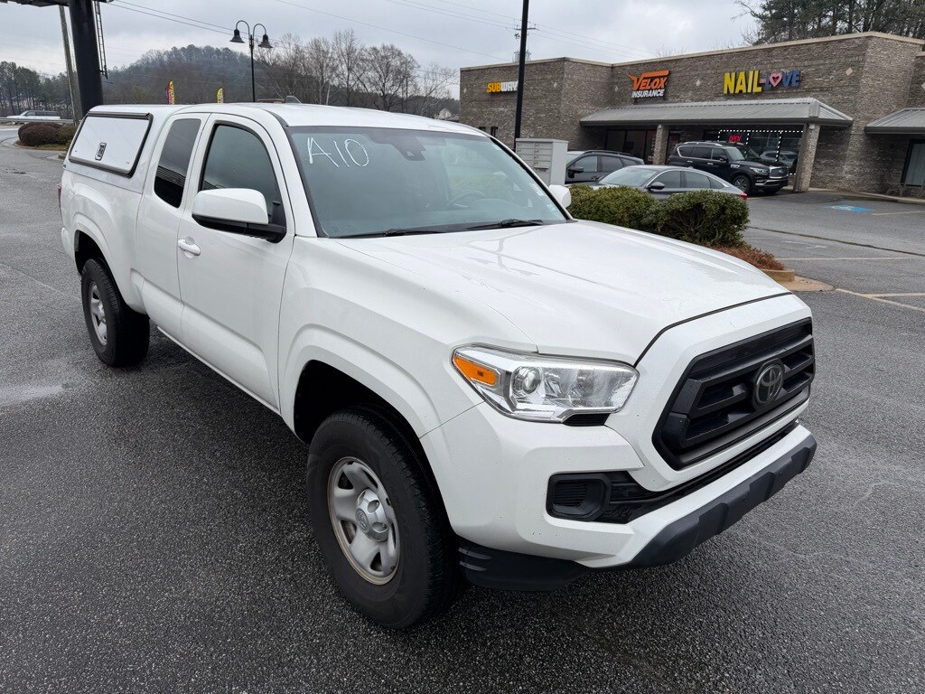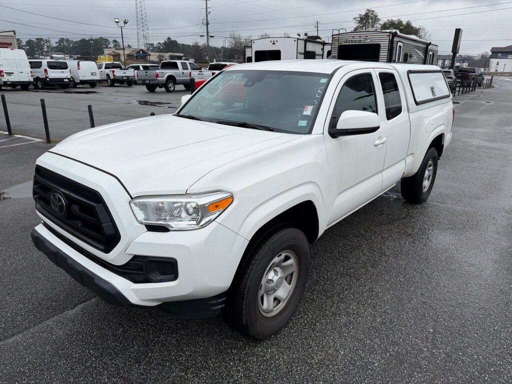 White 2021 Toyota Tacoma SR 2.7L SMPI DOHC 6-Speed Automatic 4D Access Cab 6 Speakers, ABS brakes, Air Conditioning, AM/FM radio: SiriusXM, Anti-whiplash front head restraints, Apple CarPlay/Android Auto, Auto High-beam Headlights, Axle Ratio: 4.30, Brake assist, Bumpers: body-color, Daytime Running Lamps, Driver door bin, Dual front impact airbags, Dual front side impact airbags, Electronic Stability Control, Emergency communication system: Safety Connect with 1-year trial, Exterior Parking Camera Rear, Fabric Seat Trim (FB), Front anti-roll bar, Front Bucket Seats, Front Center Armrest, Front reading lights, Front Seats, Front wheel independent suspension, Illuminated entry, Knee airbag, Low tire pressure warning, Occupant sensing airbag, Outside temperature display, Overhead airbag, Overhead console, Passenger cancellable airbag, Passenger door bin, Power door mirrors, Power steering, Power windows, Rear step bumper, Speed control, Speed-sensing steering, Steering wheel mounted audio controls, Tachometer, Telescoping steering wheel, Tilt steering wheel, Traction control, Variably intermittent wipers, and Wheels: 16" x 7J Style Steel Disc.