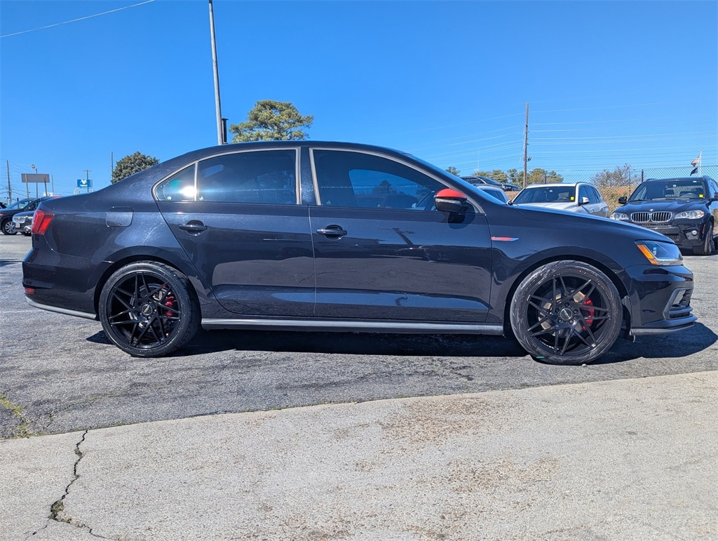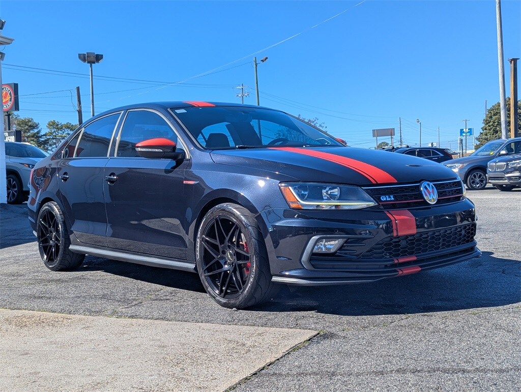 Deep Black 2017 Volkswagen Jetta GLI 2.0L I4 TSI Turbocharged 6-Speed DSG Automatic with Tiptronic 4D Sedan 18" Mallory Alloy Wheels, 4-Wheel Disc Brakes, 8 Speakers, ABS brakes, Air Conditioning, Alarm Kit, Alloy wheels, AM/FM radio: SiriusXM, Auto-dimming Rear-View mirror, Automatic temperature control, Brake assist, Bumpers: body-color, CD player, Delay-off headlights, Driver door bin, Driver vanity mirror, Dual front impact airbags, Dual front side impact airbags, Electronic Stability Control, Emergency communication system: VW Car-Net, Exterior Parking Camera Rear, Four wheel independent suspension, Front anti-roll bar, Front Bucket Seats, Front Center Armrest, Front dual zone A/C, Front fog lights, Front reading lights, Fully automatic headlights, Heated door mirrors, Heated Front Comfort Sport Seats, Heated front seats, Illuminated entry, Leather Shift Knob, Low tire pressure warning, Navigation System, Occupant sensing airbag, Outside temperature display, Overhead airbag, Overhead console, Panic alarm, Passenger door bin, Passenger vanity mirror, Power door mirrors, Power driver seat, Power moonroof, Power steering, Power windows, Radio data system, Radio: Discover Media w/Navigation, Rain sensing wipers, Rear anti-roll bar, Rear reading lights, Rear seat center armrest, Rear window defroster, Remote keyless entry, Speed control, Speed-sensing steering, Split folding rear seat, Spoiler, Sport steering wheel, Steering wheel mounted audio controls, Tachometer, Telescoping steering wheel, Tilt steering wheel, Traction control, Trip computer, Turn signal indicator mirrors, V-Tex Leatherette Seat Trim, and Variably intermittent wipers.