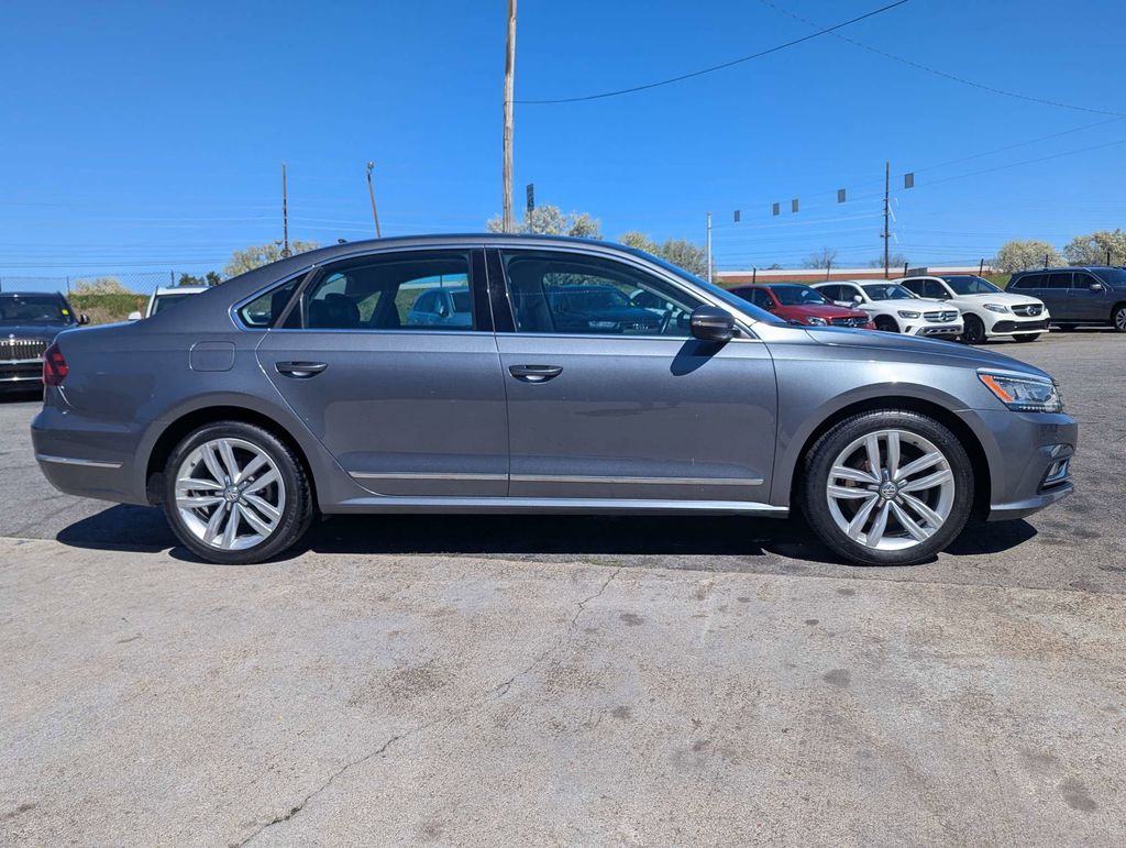 Platinum Gray Metallic 2017 Volkswagen Passat 1.8T SE 1.8L TSI 6-Speed Automatic with Tiptronic 4D Sedan SE Lighting Package, 4-Wheel Disc Brakes, 8 Speakers, ABS brakes, Air Conditioning, Alloy wheels, AM/FM radio: SiriusXM, Auto-dimming Rear-View mirror, Automatic temperature control, Brake assist, Bumpers: body-color, CD player, Compass, Delay-off headlights, Driver door bin, Driver vanity mirror, Dual front impact airbags, Dual front side impact airbags, Electronic Stability Control, Emergency communication system: VW Car-Net, Exterior Parking Camera Rear, Four wheel independent suspension, Front anti-roll bar, Front Bucket Seats, Front Center Armrest, Front dual zone A/C, Front fog lights, Front reading lights, Fully automatic headlights, Garage door transmitter: HomeLink, Heated door mirrors, Heated Front Bucket Seats, Heated front seats, Heated rear seats, Illuminated entry, Leather Shift Knob, Leather steering wheel, Low tire pressure warning, Navigation System, Occupant sensing airbag, Outside temperature display, Overhead airbag, Overhead console, Panic alarm, Passenger door bin, Passenger vanity mirror, Power door mirrors, Power driver seat, Power moonroof, Power steering, Power windows, Radio data system, Radio: Discover Media AM/FM/CD/HD w/Navigation, Rain sensing wipers, Rear anti-roll bar, Rear reading lights, Rear seat center armrest, Rear window defroster, Remote keyless entry, Speed control, Speed-sensing steering, Split folding rear seat, Steering wheel mounted audio controls, Tachometer, Telescoping steering wheel, Tilt steering wheel, Traction control, Trip computer, Turn signal indicator mirrors, V-Tex Leatherette Seating Surfaces, Variably intermittent wipers, and Wheels: 18" Chattanooga Alloy.