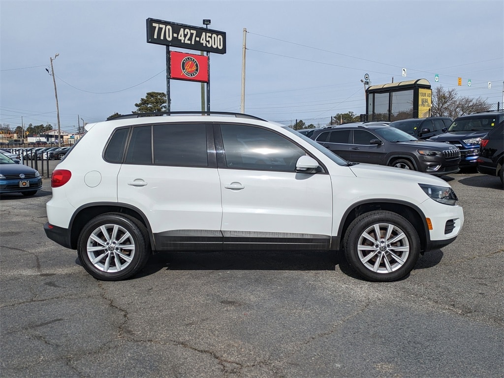 Pure White 2017 Volkswagen Tiguan Limited 2.0T 2.0L TSI DOHC 6-Speed Automatic with Tiptronic 4D Sport Utility 3.45 Axle Ratio, 4-Wheel Disc Brakes, 8 Speakers, ABS brakes, Air Conditioning, Brake assist, Bumpers: body-color, CD player, Compass, Driver door bin, Driver vanity mirror, Dual front impact airbags, Dual front side impact airbags, Electronic Stability Control, Exterior Parking Camera Rear, Four wheel independent suspension, Front anti-roll bar, Front Bucket Seats, Front Center Armrest w/Storage, Front reading lights, Heated door mirrors, Illuminated entry, Low tire pressure warning, Occupant sensing airbag, Outside temperature display, Overhead airbag, Overhead console, Panic alarm, Passenger door bin, Passenger vanity mirror, Power door mirrors, Power steering, Power windows, Radio data system, Rear anti-roll bar, Rear reading lights, Rear seat center armrest, Rear window defroster, Rear window wiper, Remote keyless entry, Roadside Assistance Kit, Security system, Speed-sensing steering, Split folding rear seat, Tachometer, Telescoping steering wheel, Tilt steering wheel, Traction control, Trip computer, Turn signal indicator mirrors, and Variably intermittent wipers.