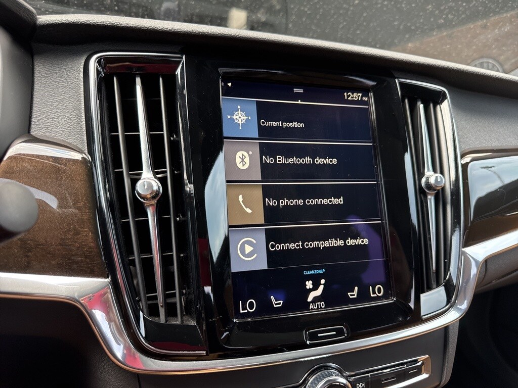 Crystal White Pearl Metallic 2018 Volvo S90 T5 Momentum 2.0L I4 16V Turbocharged Automatic with Geartronic 4D Sedan 10 Speakers, 4-Wheel Disc Brakes, ABS brakes, Air Conditioning, Alloy wheels, AM/FM radio: SiriusXM, Anti-whiplash front head restraints, Apple CarPlay/Android Auto, Auto High-beam Headlights, Auto-dimming Rear-View mirror, Automatic temperature control, Brake assist, Bumpers: body-color, Comfort Front Bucket Seats, Delay-off headlights, Driver door bin, Driver vanity mirror, Dual front impact airbags, Dual front side impact airbags, Electronic Stability Control, Emergency communication system: Volvo On-Call, Exterior Parking Camera Rear, Four wheel independent suspension, Front anti-roll bar, Front Bucket Seats, Front Center Armrest w/Storage, Front dual zone A/C, Front fog lights, Front reading lights, Fully automatic headlights, Genuine wood console insert, Genuine wood dashboard insert, Genuine wood door panel insert, Heated door mirrors, Illuminated entry, Knee airbag, Leather Seating Surfaces w/Charcoal Interior, Low tire pressure warning, Memory seat, Navigation system: Sensus Navigation, Occupant sensing airbag, Outside temperature display, Overhead airbag, Panic alarm, Passenger door bin, Passenger vanity mirror, Power adjustable rear head restraints, Power door mirrors, Power driver seat, Power moonroof, Power passenger seat, Power steering, Power windows, Premium audio system: Sensus Connect, Radio data system, Radio: High Performance AM/FM, Rear air conditioning, Rear anti-roll bar, Rear fog lights, Rear Parking Sensors, Rear reading lights, Rear seat center armrest, Rear window defroster, Remote keyless entry, Security system, Sensus Navigation, Speed control, Speed-sensing steering, Split folding rear seat, Steering wheel mounted audio controls, Tachometer, Telescoping steering wheel, Tilt steering wheel, Traction control, Trip computer, Turn signal indicator mirrors, Variably intermittent wipers, and Wheels: 18" 5-Double Spoke Silver Bright Alloy.