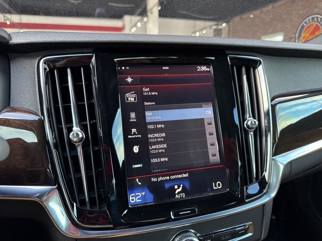 Onyx Black Metallic 2018 Volvo S90 T5 Momentum 2.0L I4 16V Turbocharged Automatic with Geartronic 4D Sedan 10 Speakers, 4-Wheel Disc Brakes, ABS brakes, Air Conditioning, Alloy wheels, AM/FM radio: SiriusXM, Anti-whiplash front head restraints, Apple CarPlay/Android Auto, Auto High-beam Headlights, Auto-dimming Rear-View mirror, Automatic temperature control, Brake assist, Bumpers: body-color, Comfort Front Bucket Seats, Delay-off headlights, Driver door bin, Driver vanity mirror, Dual front impact airbags, Dual front side impact airbags, Electronic Stability Control, Emergency communication system: Volvo On-Call, Exterior Parking Camera Rear, Four wheel independent suspension, Front anti-roll bar, Front Bucket Seats, Front Center Armrest w/Storage, Front dual zone A/C, Front fog lights, Front reading lights, Fully automatic headlights, Genuine wood console insert, Genuine wood dashboard insert, Genuine wood door panel insert, Heated door mirrors, Illuminated entry, Knee airbag, Leather Seating Surfaces w/Charcoal Interior, Low tire pressure warning, Memory seat, Navigation system: Sensus Navigation, Occupant sensing airbag, Outside temperature display, Overhead airbag, Panic alarm, Passenger door bin, Passenger vanity mirror, Power adjustable rear head restraints, Power door mirrors, Power driver seat, Power moonroof, Power passenger seat, Power steering, Power windows, Premium audio system: Sensus Connect, Radio data system, Radio: High Performance AM/FM, Rear air conditioning, Rear anti-roll bar, Rear fog lights, Rear Parking Sensors, Rear reading lights, Rear seat center armrest, Rear window defroster, Remote keyless entry, Security system, Sensus Navigation, Speed control, Speed-sensing steering, Split folding rear seat, Steering wheel mounted audio controls, Tachometer, Telescoping steering wheel, Tilt steering wheel, Traction control, Trip computer, Turn signal indicator mirrors, Variably intermittent wipers, and Wheels: 18" 5-Double Spoke Silver Bright Alloy.