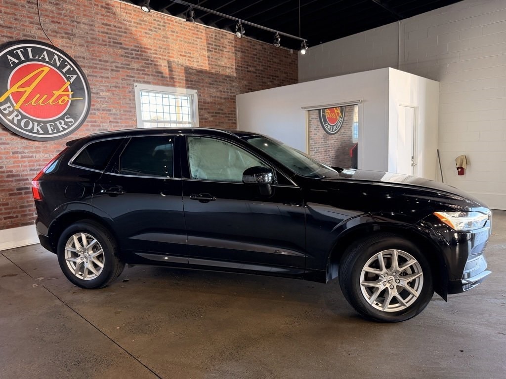 Onyx Black Metallic 2018 Volvo XC60 T5 Momentum I4 Automatic with Geartronic 4D Sport Utility 10 Speakers, 18" Alloy Wheels, 4-Wheel Disc Brakes, ABS brakes, Air Conditioning, Alloy wheels, AM/FM radio: SiriusXM, Anti-whiplash front head restraints, Apple CarPlay/Android Auto, Auto High-beam Headlights, Auto-dimming Rear-View mirror, Automatic temperature control, Brake assist, Bumpers: body-color, Delay-off headlights, Driver door bin, Driver vanity mirror, Dual front impact airbags, Dual front side impact airbags, Electronic Stability Control, Emergency communication system: Volvo On-Call, Exterior Parking Camera Rear, Four wheel independent suspension, Front anti-roll bar, Front Bucket Seats, Front Center Armrest, Front dual zone A/C, Front reading lights, Fully automatic headlights, Heated door mirrors, Illuminated entry, Keyless Entry & Drive w/Handsfree Tailgate Opening, Knee airbag, Leather Seating Surfaces, Leather Shift Knob, Low tire pressure warning, Memory seat, Occupant sensing airbag, Outside temperature display, Overhead airbag, Panic alarm, Passenger door bin, Passenger vanity mirror, Power door mirrors, Power driver seat, Power Liftgate, Power moonroof, Power passenger seat, Power steering, Power windows, Premium audio system: Sensus Connect, Radio data system, Radio: High Performance Audio System, Rain sensing wipers, Rear anti-roll bar, Rear fog lights, Rear reading lights, Rear seat center armrest, Rear window defroster, Rear window wiper, Remote keyless entry, Roof rack: rails only, Security system, Speed control, Split folding rear seat, Spoiler, Steering wheel mounted audio controls, Tachometer, Telescoping steering wheel, Tilt steering wheel, Traction control, Trip computer, Turn signal indicator mirrors, and Variably intermittent wipers.