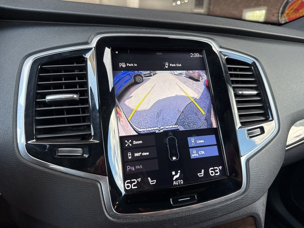 Onyx Black Metallic 2018 Volvo XC90 T6 Momentum I4 Supercharged Automatic with Geartronic 4D Sport Utility Convenience Package (12V Power Outlet in Cargo Area, 360-Degree Surround View Camera, Compass in Inner Rear View Mirror, Grocery Bag Holder, Heated Washer Nozzles, HomeLink, and Park Assist Pilot), Momentum Plus Package (Active Bending Lights, Dark Flame Birch Wood Inlays, Headlight High Pressure Cleaning, and Interior High Level Illumination), 10 Speakers, 3rd row seats: bucket, 4-Wheel Disc Brakes, A/V remote, ABS brakes, Air Conditioning, Alloy wheels, AM/FM radio: SiriusXM, Anti-whiplash front head restraints, Apple CarPlay/Android Auto, Auto High-beam Headlights, Auto-dimming door mirrors, Auto-dimming Rear-View mirror, Automatic temperature control, Brake assist, Bumpers: body-color, Delay-off headlights, Driver door bin, Driver vanity mirror, Dual front impact airbags, Dual front side impact airbags, Electronic Stability Control, Emergency communication system: Volvo On-Call, Exterior Parking Camera Rear, Four wheel independent suspension, Front anti-roll bar, Front Bucket Seats, Front Center Armrest w/Storage, Front dual zone A/C, Front fog lights, Front reading lights, Fully automatic headlights, Heated door mirrors, Heated Front Bucket Seats, Heated front seats, Illuminated entry, Knee airbag, Leather Seating Surfaces w/Charcoal Interior, Leather Shift Knob, Low tire pressure warning, Memory seat, Navigation System, Occupant sensing airbag, Outside temperature display, Overhead airbag, Panic alarm, Passenger door bin, Passenger vanity mirror, Power door mirrors, Power driver seat, Power Liftgate, Power moonroof, Power passenger seat, Power steering, Power windows, Premium audio system: Sensus Connect, Radio data system, Radio: High Performance Audio System, Rain sensing wipers, Rear air conditioning, Rear anti-roll bar, Rear dual zone A/C, Rear fog lights, Rear Parking Sensors, Rear reading lights, Rear seat center armrest, Rear window defroster, Rear window wiper, Remote keyless entry, Roof rack: rails only, Security system, Speed control, Speed-sensing steering, Split folding rear seat, Spoiler, Steering wheel mounted audio controls, Tachometer, Telescoping steering wheel, Tilt steering wheel, Traction control, Trip computer, Turn signal indicator mirrors, Variably intermittent wipers, Wheels: 19" 10-Spoke Turbine in Silver Bright, and Wheels: 20" 5-Double Spoke Alloy Matte Tech Black.