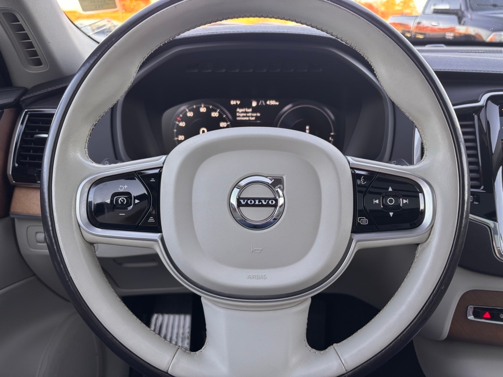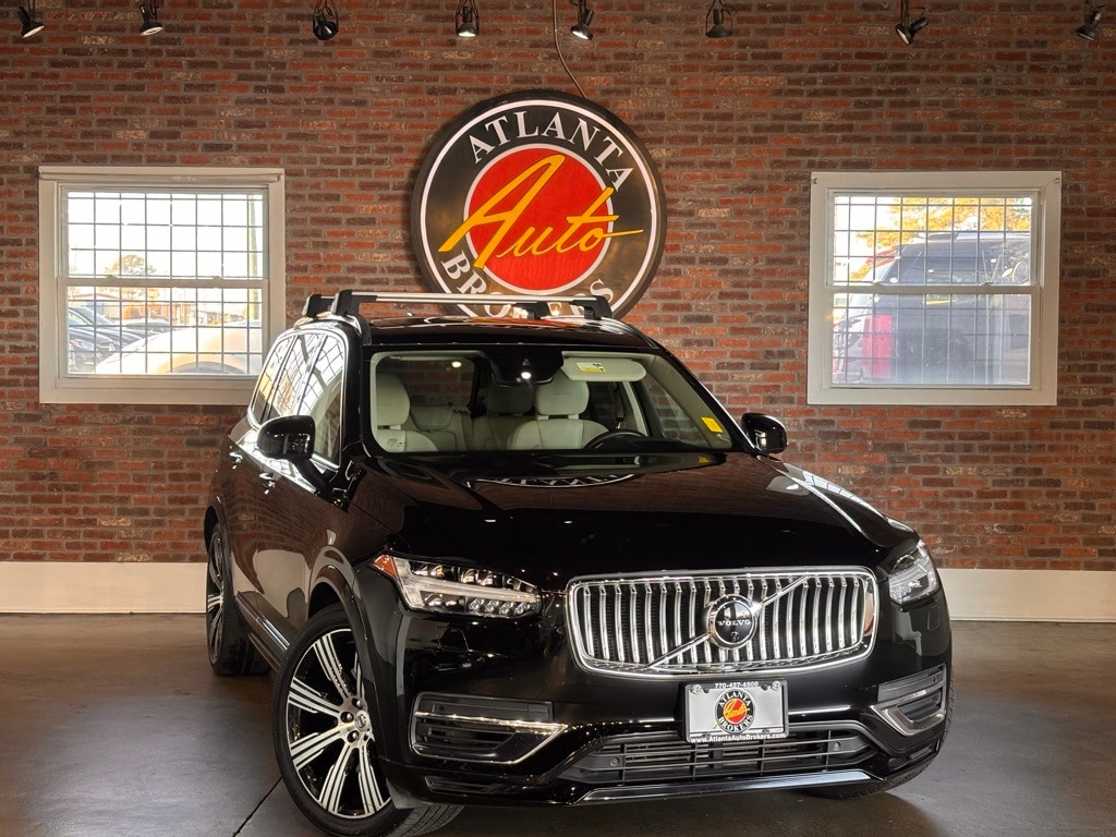Onyx Black Metallic 2020 Volvo XC90 Hybrid T8 Inscription I4 Supercharged Automatic with Geartronic 4D Sport Utility 14 Speakers, 3rd row seats: bucket, 4-Corner Air Suspension w/Four-C Active Chassis, 4-Wheel Disc Brakes, ABS brakes, Air Conditioning, Alloy wheels, AM/FM radio: SiriusXM, Anti-whiplash front head restraints, Apple CarPlay/Android Auto, Auto High-beam Headlights, Auto-dimming door mirrors, Auto-dimming Rear-View mirror, Automatic temperature control, Bodyside moldings, Brake assist, Bumpers: body-color, Delay-off headlights, Driver door bin, Driver vanity mirror, Dual front impact airbags, Dual front side impact airbags, Electronic Stability Control, Emergency communication system: Volvo On-Call, Exterior Parking Camera Rear, Four wheel independent suspension, Front anti-roll bar, Front Bucket Seats, Front Center Armrest w/Storage, Front dual zone A/C, Front fog lights, Front reading lights, Fully automatic headlights, Garage door transmitter: HomeLink, Genuine wood dashboard insert, Genuine wood door panel insert, harman/kardon® Speakers, Heated & Ventilated Front Comfort Seats, Heated door mirrors, Heated front seats, Illuminated entry, Knee airbag, Low tire pressure warning, Memory seat, Nappa Leather Seating Surfaces, Navigation System, Occupant sensing airbag, Outside temperature display, Overhead airbag, Panic alarm, Passenger door bin, Passenger vanity mirror, Power door mirrors, Power driver seat, Power Liftgate, Power moonroof, Power passenger seat, Power steering, Power windows, Premium audio system: Sensus Connect, Radio data system, Radio: harman/kardon Premium Sound w/Sensus Nav Pro, Rain sensing wipers, Rear air conditioning, Rear anti-roll bar, Rear dual zone A/C, Rear fog lights, Rear reading lights, Rear seat center armrest, Rear window defroster, Rear window wiper, Remote keyless entry, Roof rack: rails only, Security system, Speed control, Speed-sensing steering, Split folding rear seat, Spoiler, Steering wheel mounted audio controls, Tachometer, Telescoping steering wheel, Tilt steering wheel, Traction control, Trip computer, Turn signal indicator mirrors, Variably intermittent wipers, Ventilated front seats, Wheels: 20" 10-Spoke Black Diamond Cut Alloy, and Wheels: 21" 8-Multi Spoke Black Diamond-Cut Alloy.