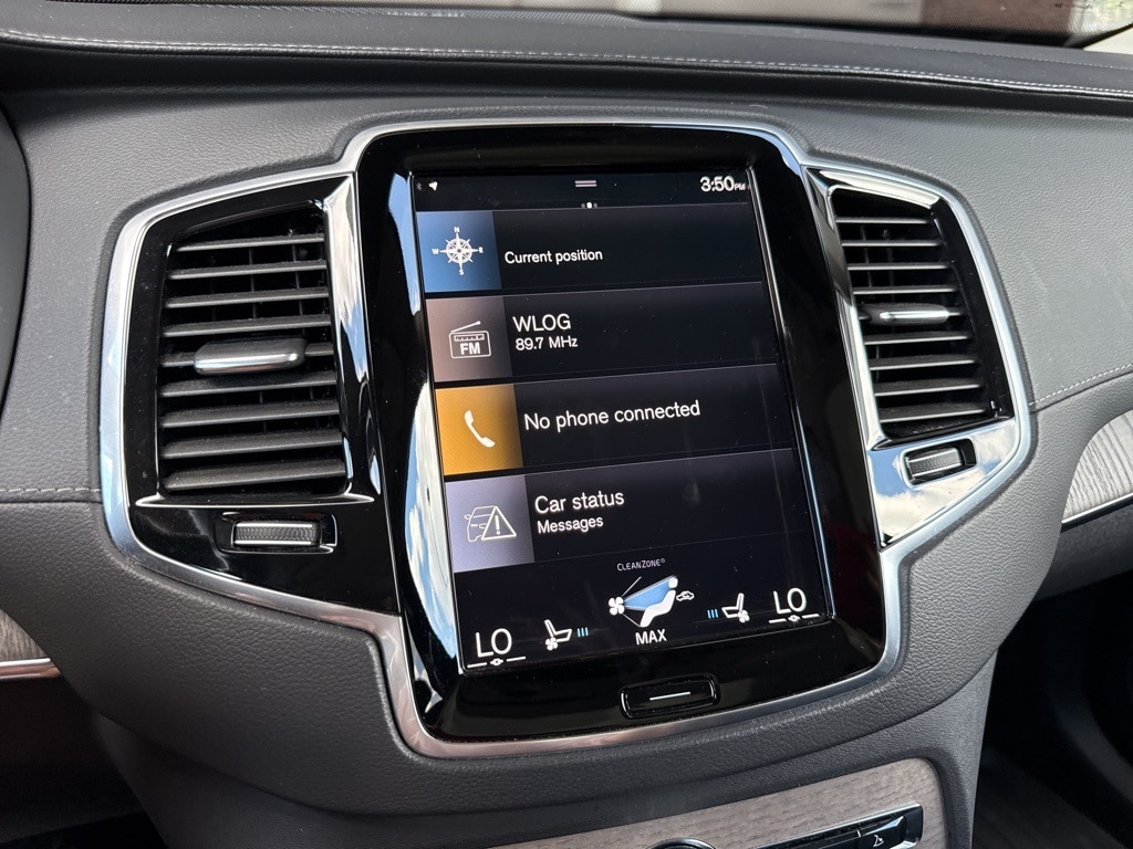 Beige 2022 Volvo XC90 T6 Inscription 2.0L I4 Turbocharged DOHC 16V LEV3-ULEV70 316hp Automatic with Geartronic 4D Sport Utility 14 Speakers, 3rd row seats: bucket, 4-Wheel Disc Brakes, ABS brakes, Air Conditioning, Alloy wheels, AM/FM radio: SiriusXM, Anti-whiplash front head restraints, Apple CarPlay/Android Auto, Auto High-beam Headlights, Auto-dimming door mirrors, Auto-dimming Rear-View mirror, Automatic temperature control, Bodyside moldings, Brake assist, Bumpers: body-color, Delay-off headlights, Driver door bin, Driver vanity mirror, Dual front impact airbags, Dual front side impact airbags, Electronic Stability Control, Emergency communication system: Volvo Cars App w/4 Year Subscription, Exterior Parking Camera Rear, Four wheel independent suspension, Front anti-roll bar, Front Bucket Seats, Front Center Armrest w/Storage, Front dual zone A/C, Front fog lights, Front reading lights, Fully automatic headlights, Garage door transmitter: HomeLink, Genuine wood dashboard insert, Genuine wood door panel insert, harman/kardon® Speakers, Heated & Ventilated Front Bucket Seats, Heated door mirrors, Heated front seats, Illuminated entry, Knee airbag, Leather Shift Knob, Low tire pressure warning, Memory seat, Navigation system: Sensus Navigation, Occupant sensing airbag, Outside temperature display, Overhead airbag, Panic alarm, Passenger door bin, Passenger vanity mirror, Perforated Nappa Leather Upholstery, Power door mirrors, Power driver seat, Power moonroof, Power passenger seat, Power steering, Power windows, Premium audio system: Sensus Connect, Radio data system, Radio: harman/kardon Premium Audio System, Rain sensing wipers, Rear air conditioning, Rear anti-roll bar, Rear dual zone A/C, Rear fog lights, Rear reading lights, Rear seat center armrest, Rear window defroster, Rear window wiper, Remote keyless entry, Security system, Speed control, Speed-sensing steering, Split folding rear seat, Spoiler, Steering wheel mounted audio controls, Tachometer, Telescoping steering wheel, Tilt steering wheel, Traction control, Trip computer, Turn signal indicator mirrors, Variably intermittent wipers, Ventilated front seats, and Wheels: 20" 10-Spoke Black Diamond Cut Alloy.